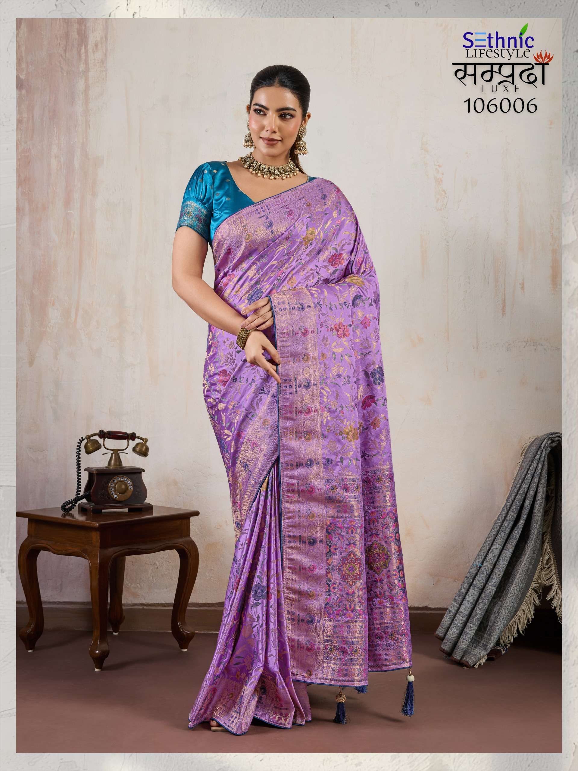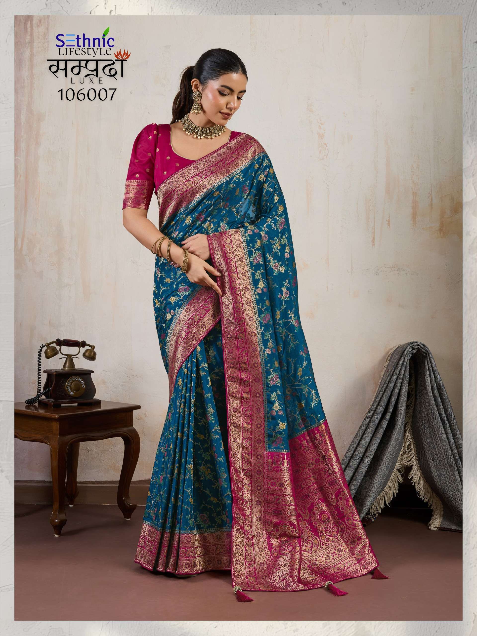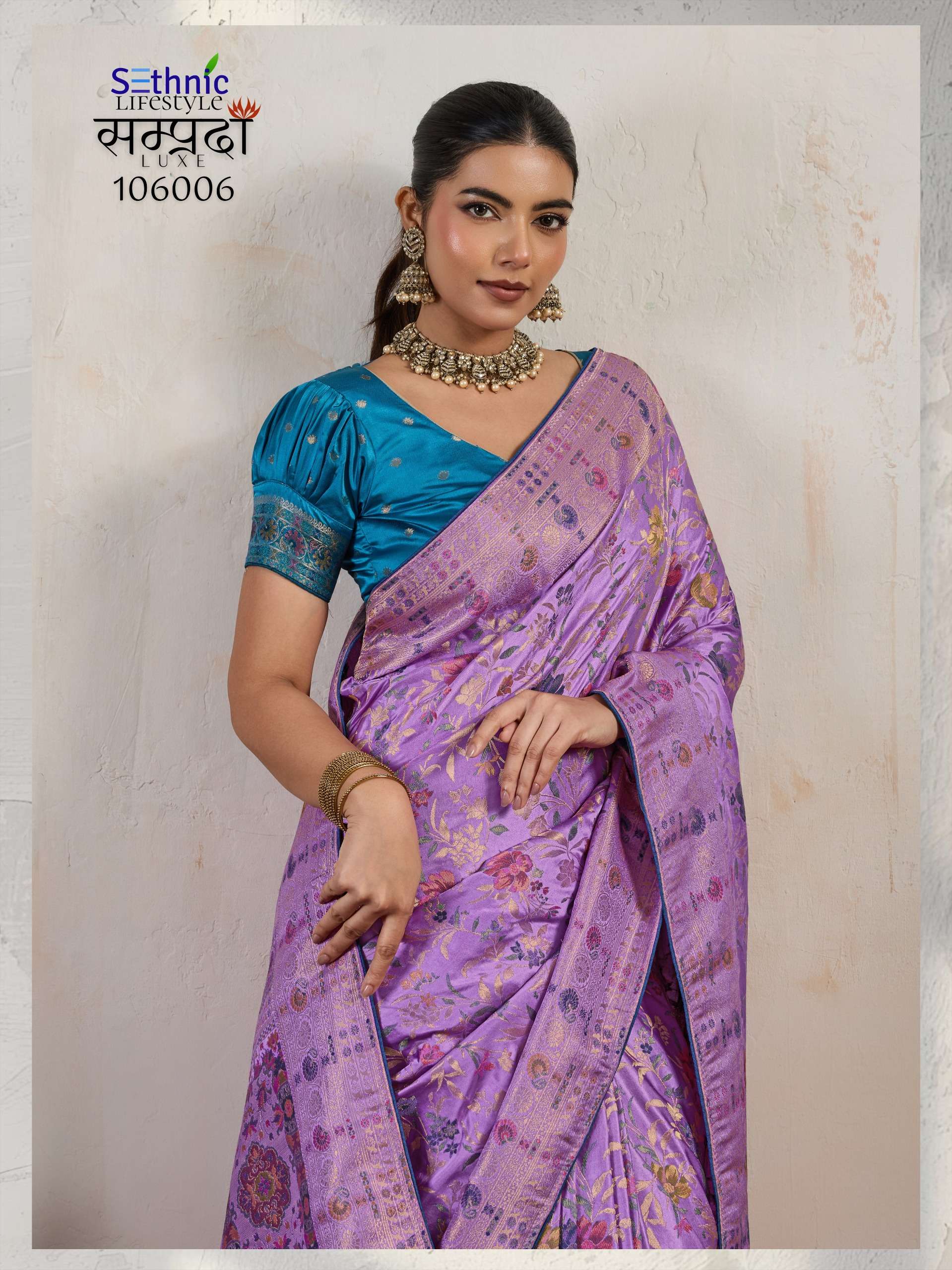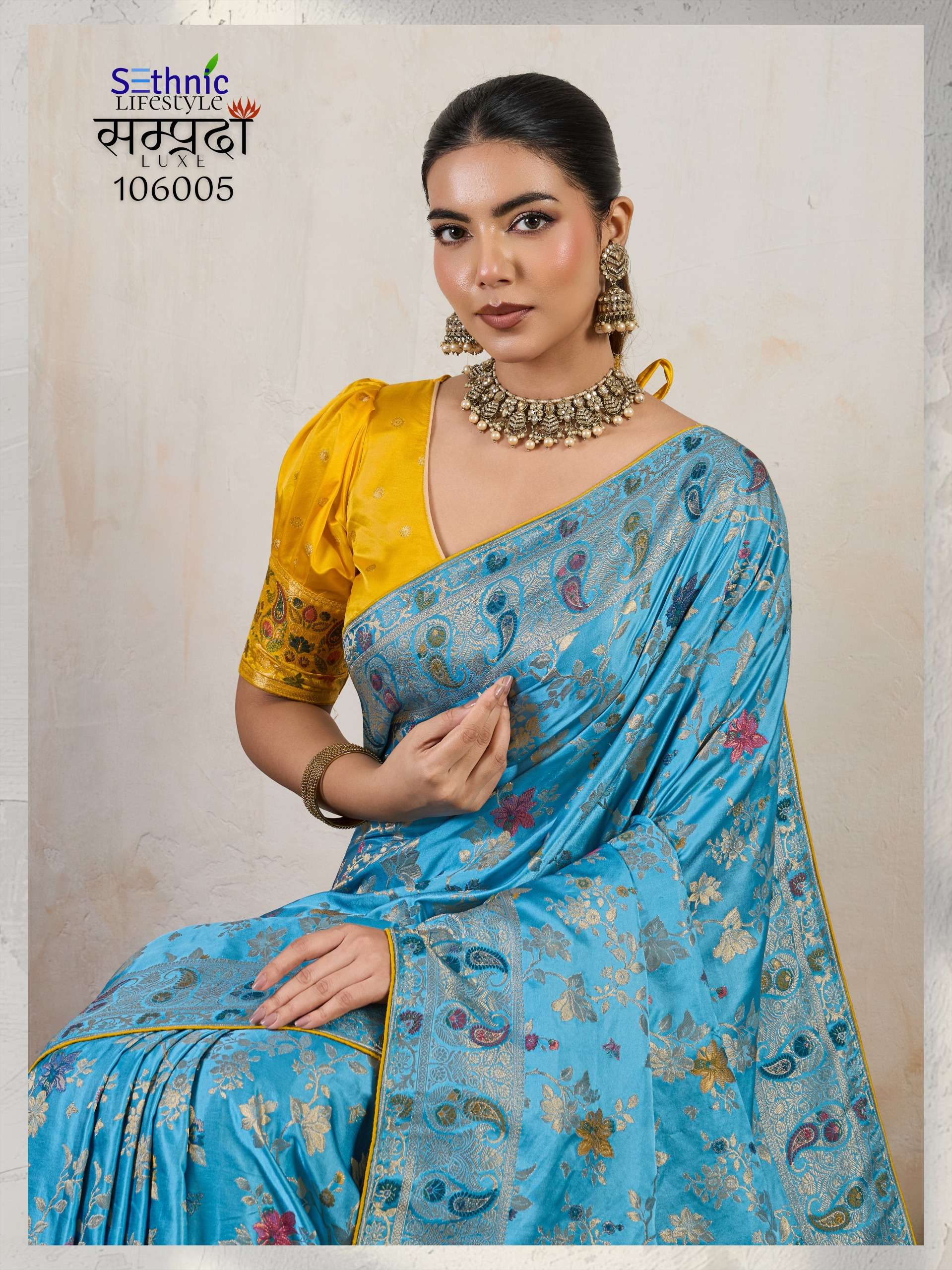 Buy Online Samprada Luxe Series 106005 TO 106007 By Sethnic Lifestyle saree Collection manufacturer surat 3 Pcs of Full Catalogue at Wholesale Price. Looking for Samprada Luxe Series 106005 TO 106007 By Sethnic Lifestyle saree Collection manufacturer surat Full Catalouge at Best Price? Buy Now Samprada Luxe Series 106005 TO 106007 By Sethnic Lifestyle saree Collection manufacturer surat at Wholesale Rate of Rs 6585 with Total 3 Pcs from authroized dealer and supplier of SETHNIC LIFESTYLE Brand. Cost of Each piece is just only Rs 2195 which is very low and affordable price to resale the product in your retail store ,This is Surat based Wholesale Supplier & Dealer of SETHNIC LIFESTYLE Brand. Click on Brand name to Know more about SETHNIC LIFESTYLE Brand's products.Call or Whatsapp on 9898838984 for booking or enquiry