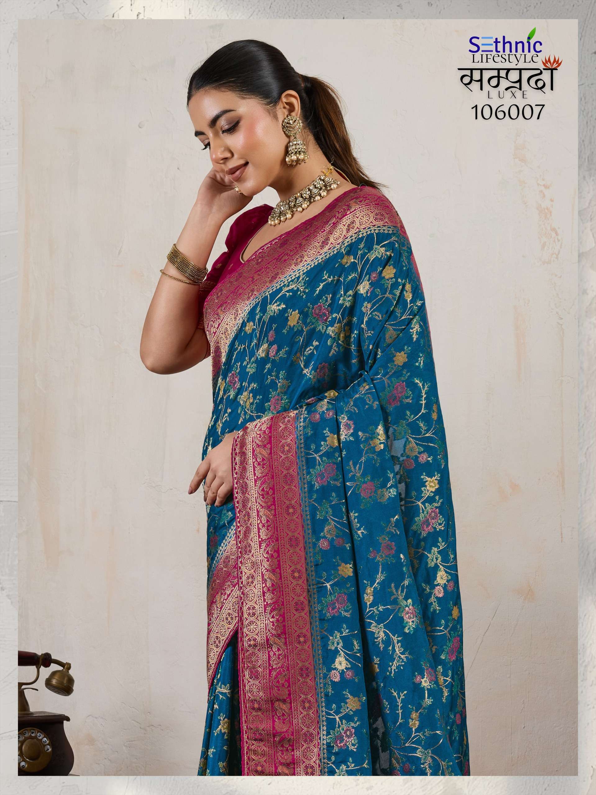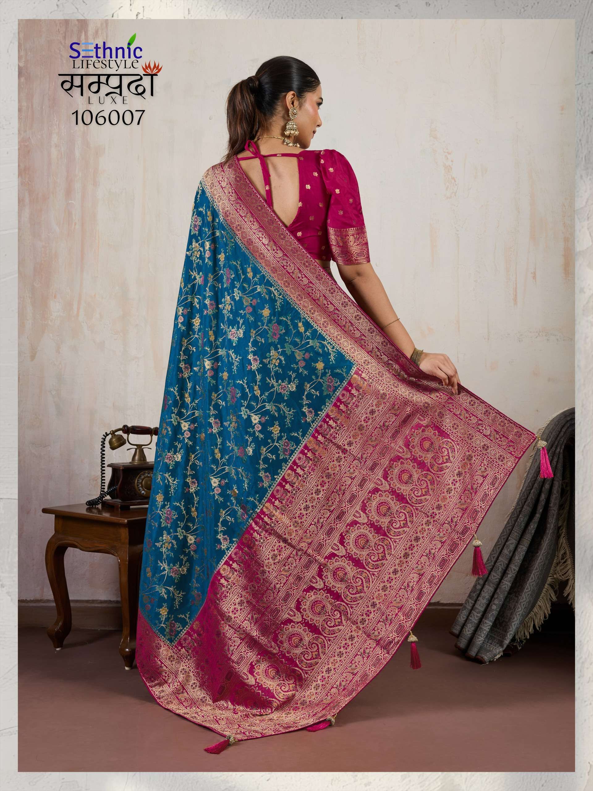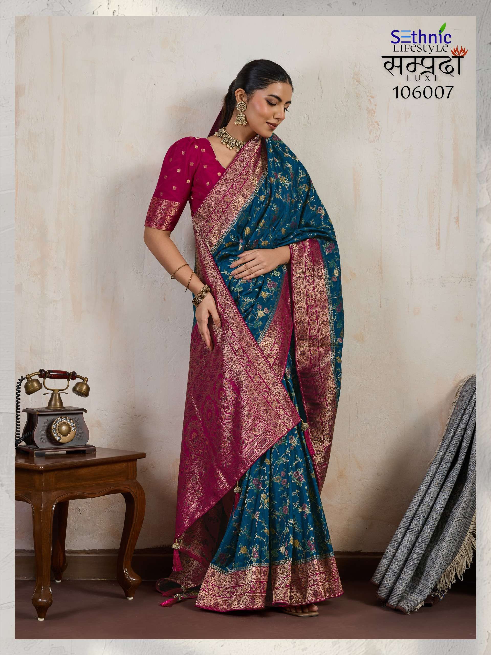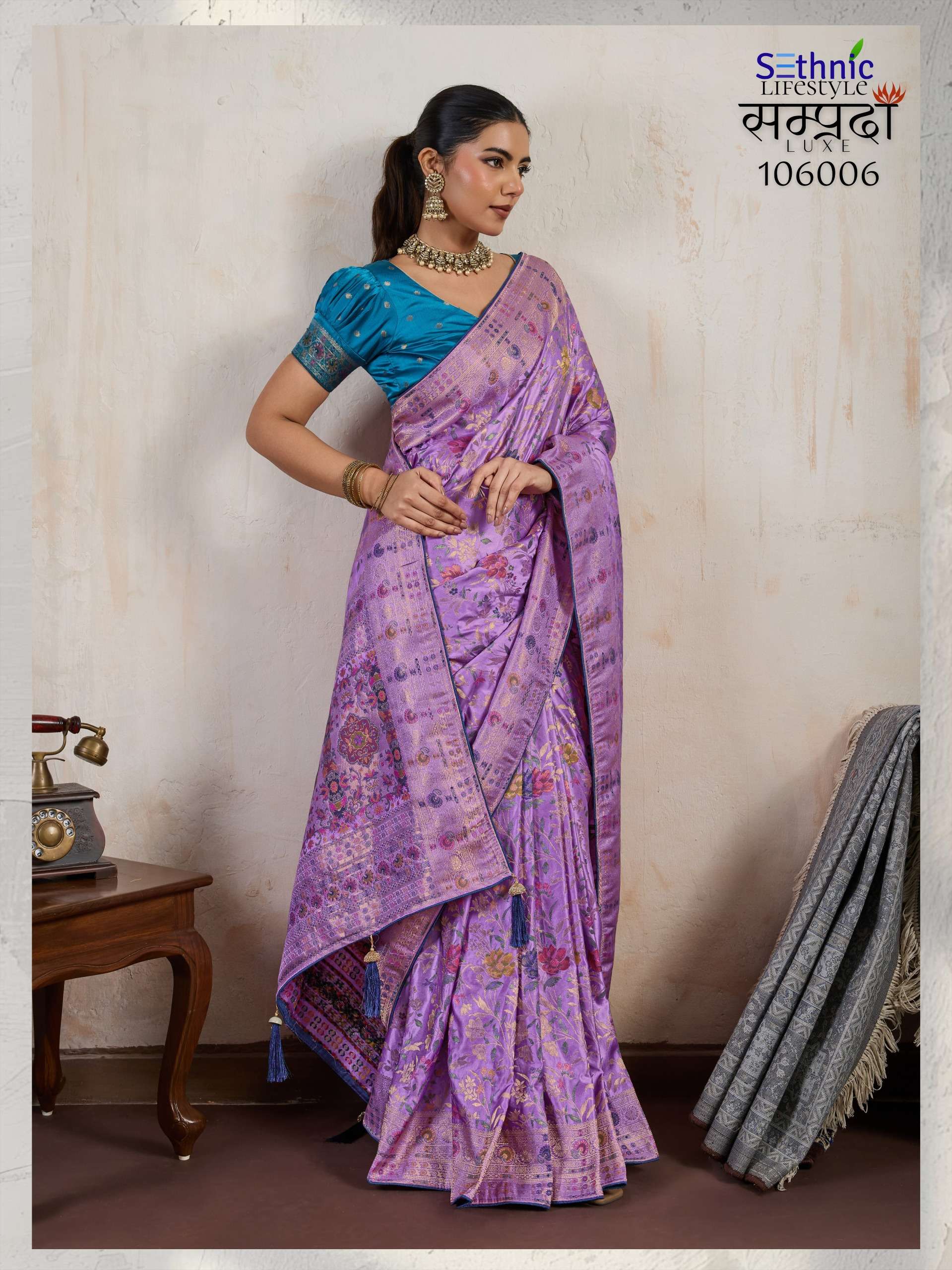 Buy Online Samprada Luxe Series 106005 TO 106007 By Sethnic Lifestyle saree Collection manufacturer surat 3 Pcs of Full Catalogue at Wholesale Price. Looking for Samprada Luxe Series 106005 TO 106007 By Sethnic Lifestyle saree Collection manufacturer surat Full Catalouge at Best Price? Buy Now Samprada Luxe Series 106005 TO 106007 By Sethnic Lifestyle saree Collection manufacturer surat at Wholesale Rate of Rs 6585 with Total 3 Pcs from authroized dealer and supplier of SETHNIC LIFESTYLE Brand. Cost of Each piece is just only Rs 2195 which is very low and affordable price to resale the product in your retail store ,This is Surat based Wholesale Supplier & Dealer of SETHNIC LIFESTYLE Brand. Click on Brand name to Know more about SETHNIC LIFESTYLE Brand's products.Call or Whatsapp on 9898838984 for booking or enquiry