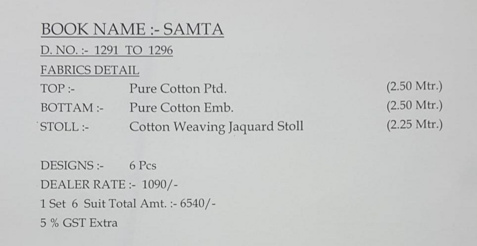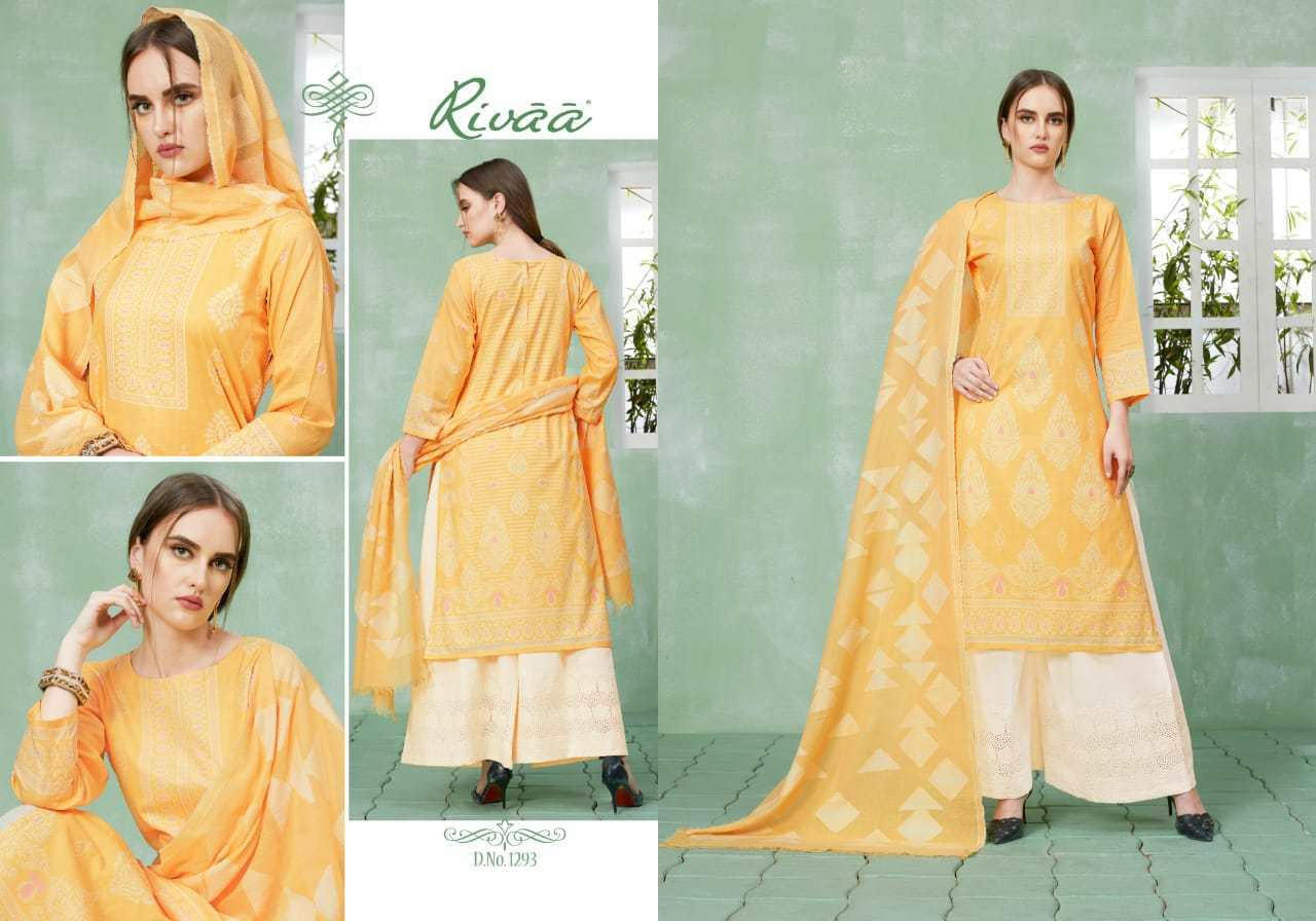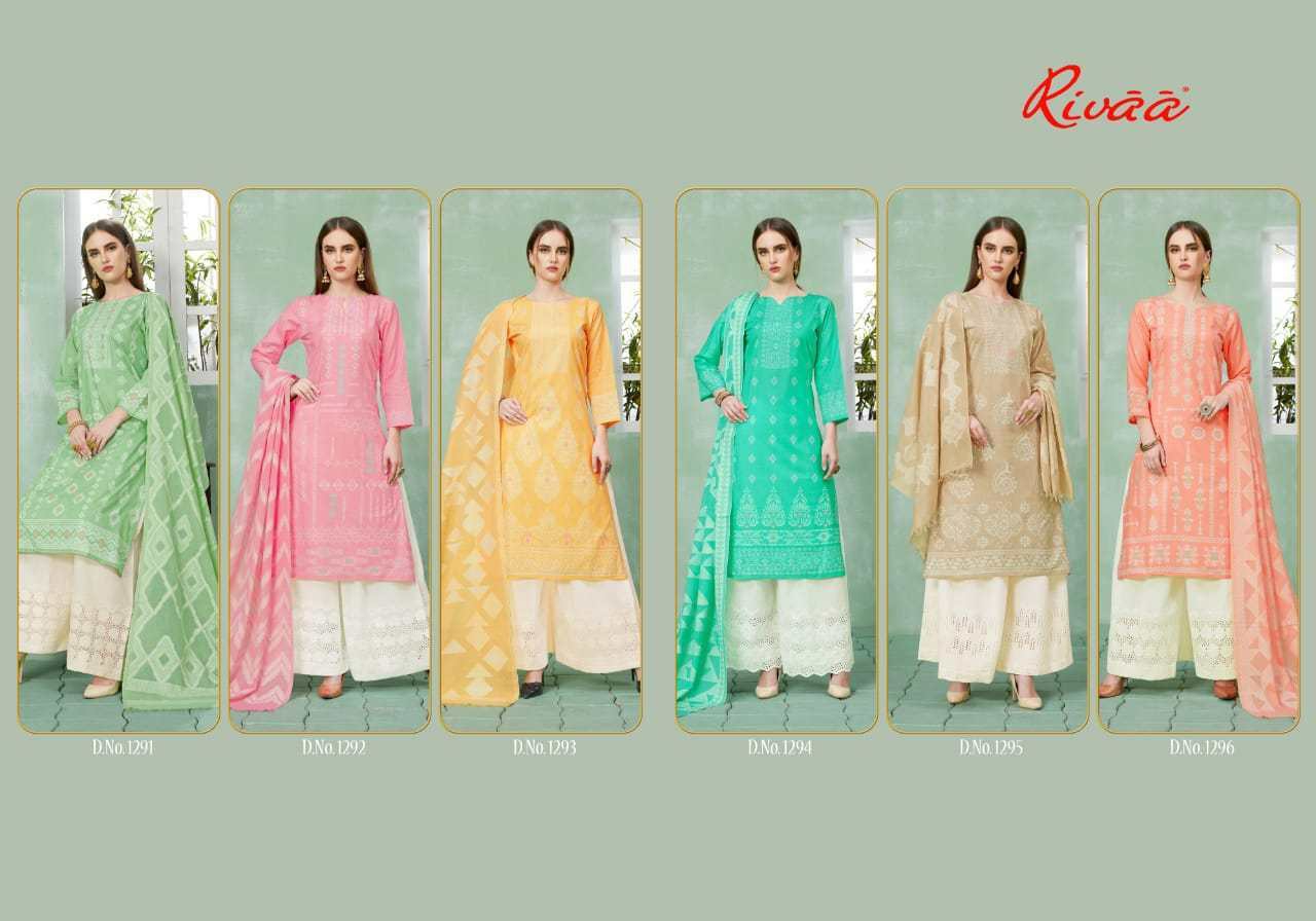Buy Online Samta By Rivaa Cotton Designer Dress Materials Wholesale Supplier Gujarat 6 Pcs of Full Catalogue at Wholesale Price. Looking for Samta By Rivaa Cotton Designer Dress Materials Wholesale Supplier Gujarat Full Catalouge at Best Price? Buy Now Samta By Rivaa Cotton Designer Dress Materials Wholesale Supplier Gujarat at Wholesale Rate of Rs 6540 with Total 6 Pcs from authroized dealer and supplier of RIVAA Brand. Cost of Each piece is just only Rs 1090 which is very low and affordable price to resale the product in your retail store ,This is Surat based Wholesale Supplier & Dealer of RIVAA Brand. Click on Brand name to Know more about RIVAA Brand's products.Call or Whatsapp on 9898838984 for booking or enquiry