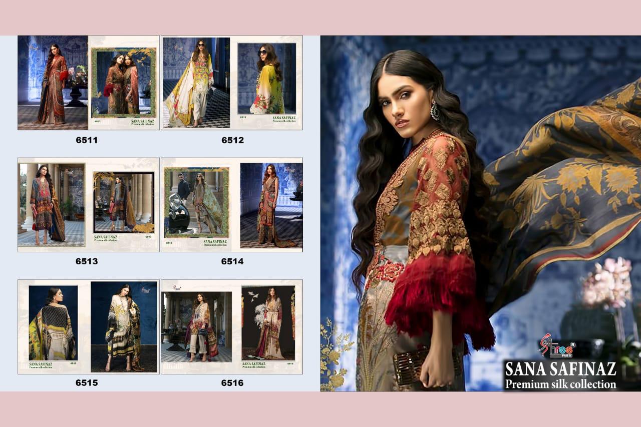 Buy Online Sana Safinaz Premium Silk Collection By Shree Fabs 6511 Series Fancy Japan Satin Printed Pakistani Salwar Kameez Catlog Wholesaler Surat 6 Pcs of Full Catalogue at Wholesale Price. Looking for Sana Safinaz Premium Silk Collection By Shree Fabs 6511 Series Fancy Japan Satin Printed Pakistani Salwar Kameez Catlog Wholesaler Surat Full Catalouge at Best Price? Buy Now Sana Safinaz Premium Silk Collection By Shree Fabs 6511 Series Fancy Japan Satin Printed Pakistani Salwar Kameez Catlog Wholesaler Surat at Wholesale Rate of Rs 5394 with Total 6 Pcs from authroized dealer and supplier of SHREE FABS Brand. Cost of Each piece is just only Rs 899 which is very low and affordable price to resale the product in your retail store ,This is Surat based Wholesale Supplier & Dealer of SHREE FABS Brand. Click on Brand name to Know more about SHREE FABS Brand's products.Call or Whatsapp on 9898838984 for booking or enquiry