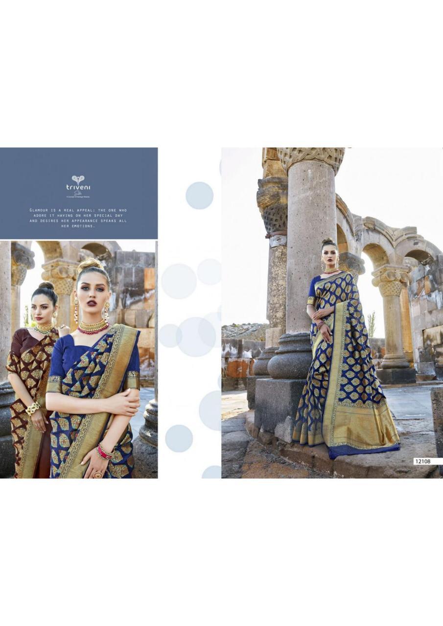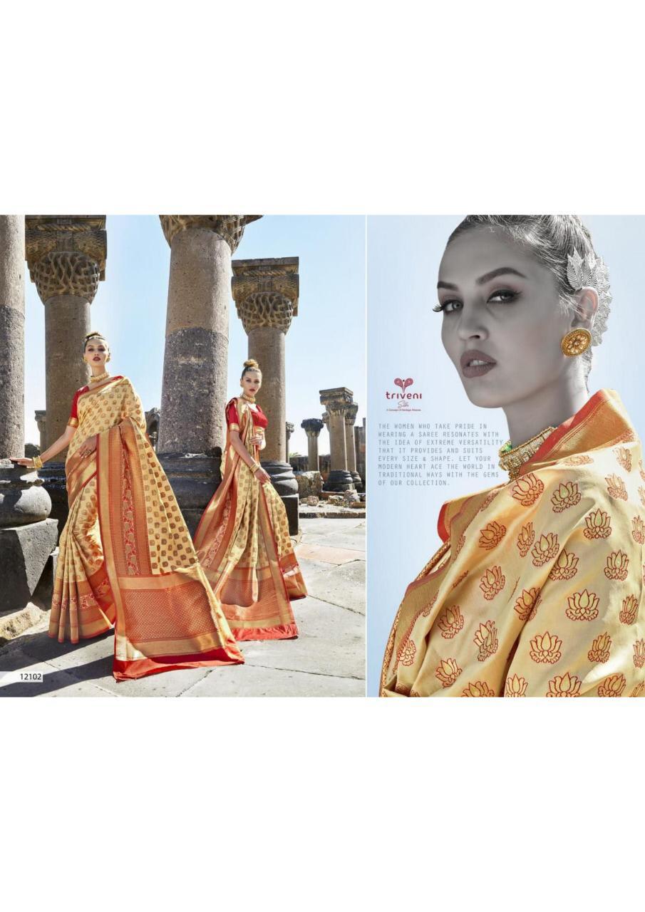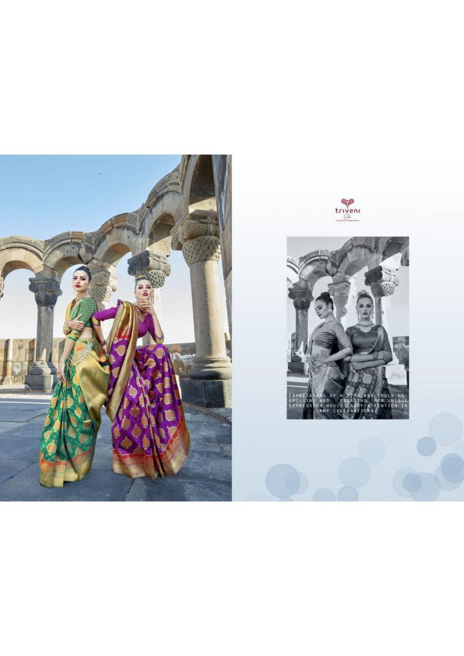 Brand - Triveni. Catlog name - SANCHARI . Rate -891 per pcs . Fabric- Silk Rich pallu . Set To Set . GST 5 Percent Extra. Delivery 2 days |