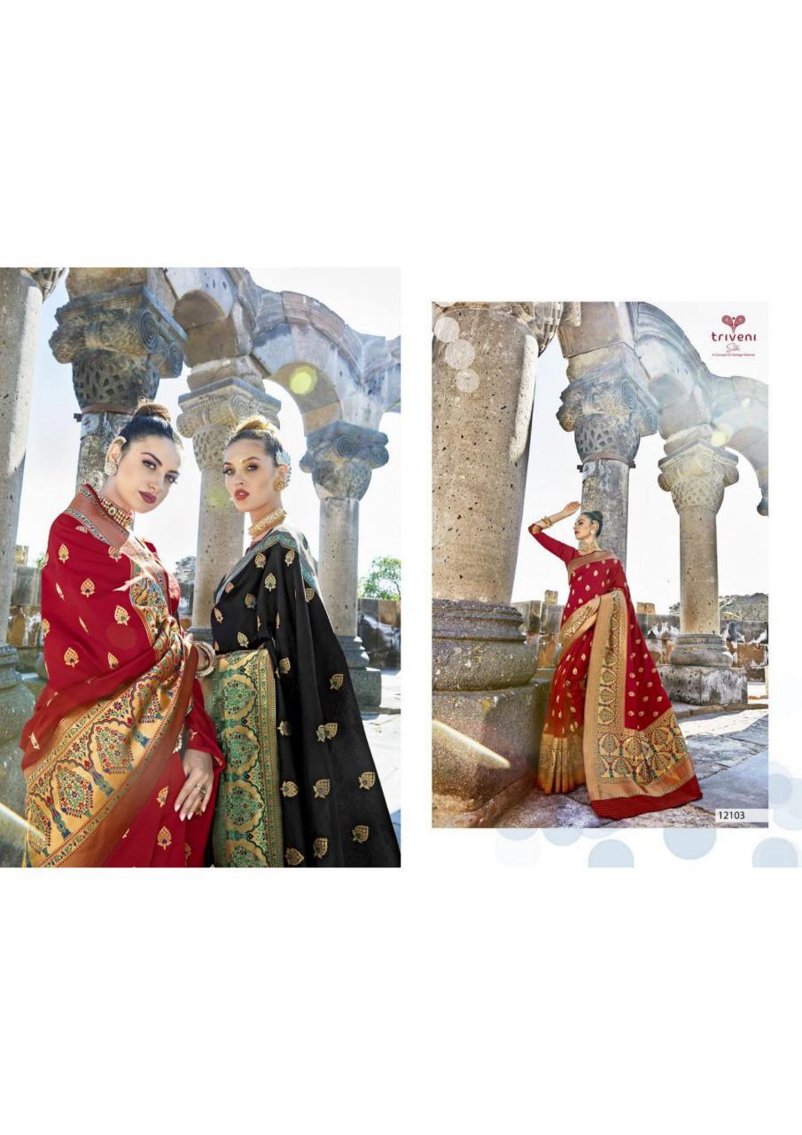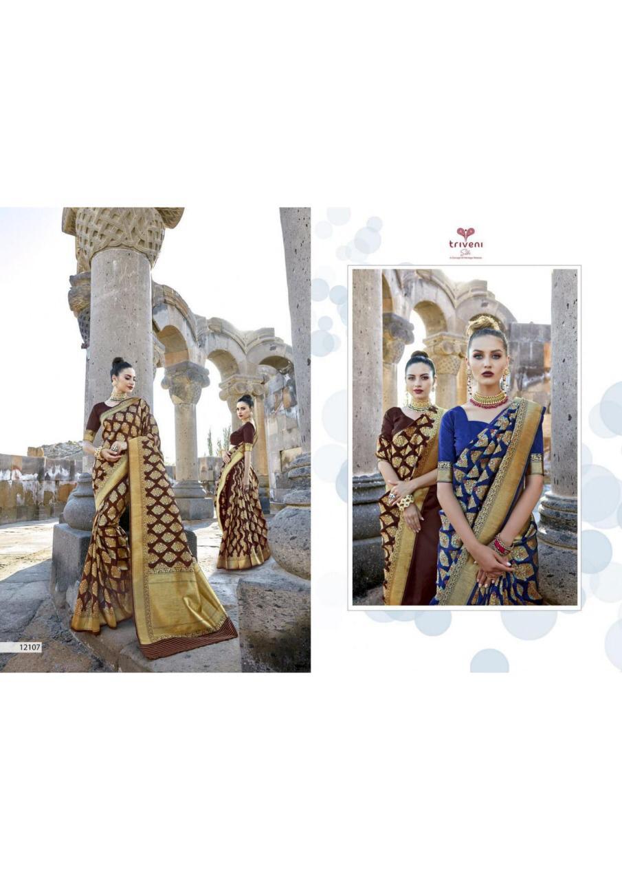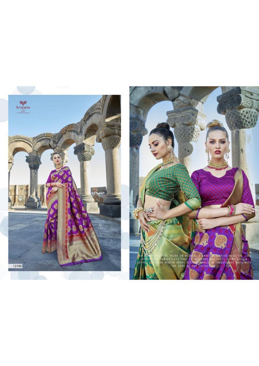 Brand - Triveni. Catlog name - SANCHARI . Rate -891 per pcs . Fabric- Silk Rich pallu . Set To Set . GST 5 Percent Extra. Delivery 2 days |