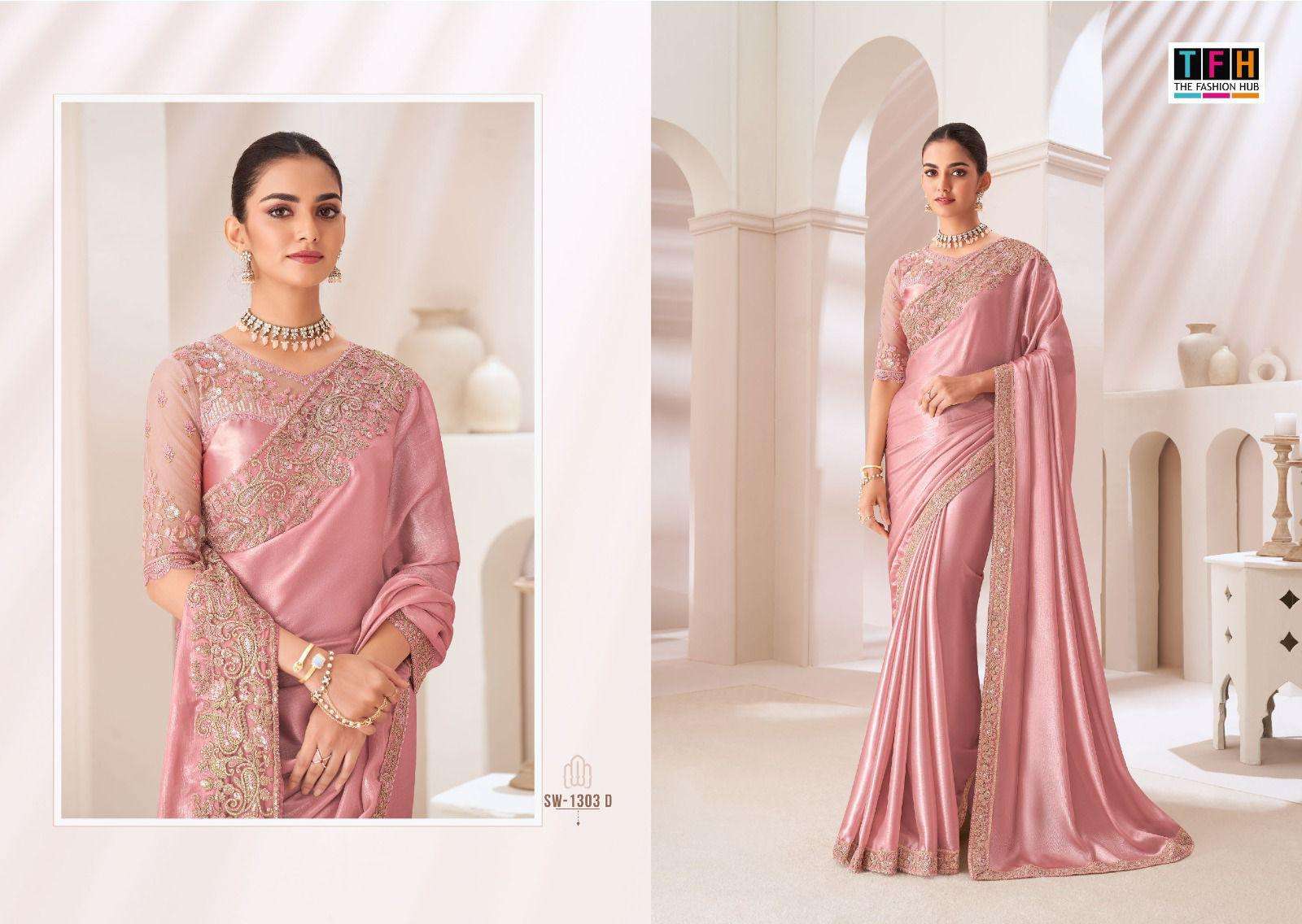 Sandal wood 1303 hit colour series 1303 A to 303F by TFH sartin chiffon saree manufacturer surat