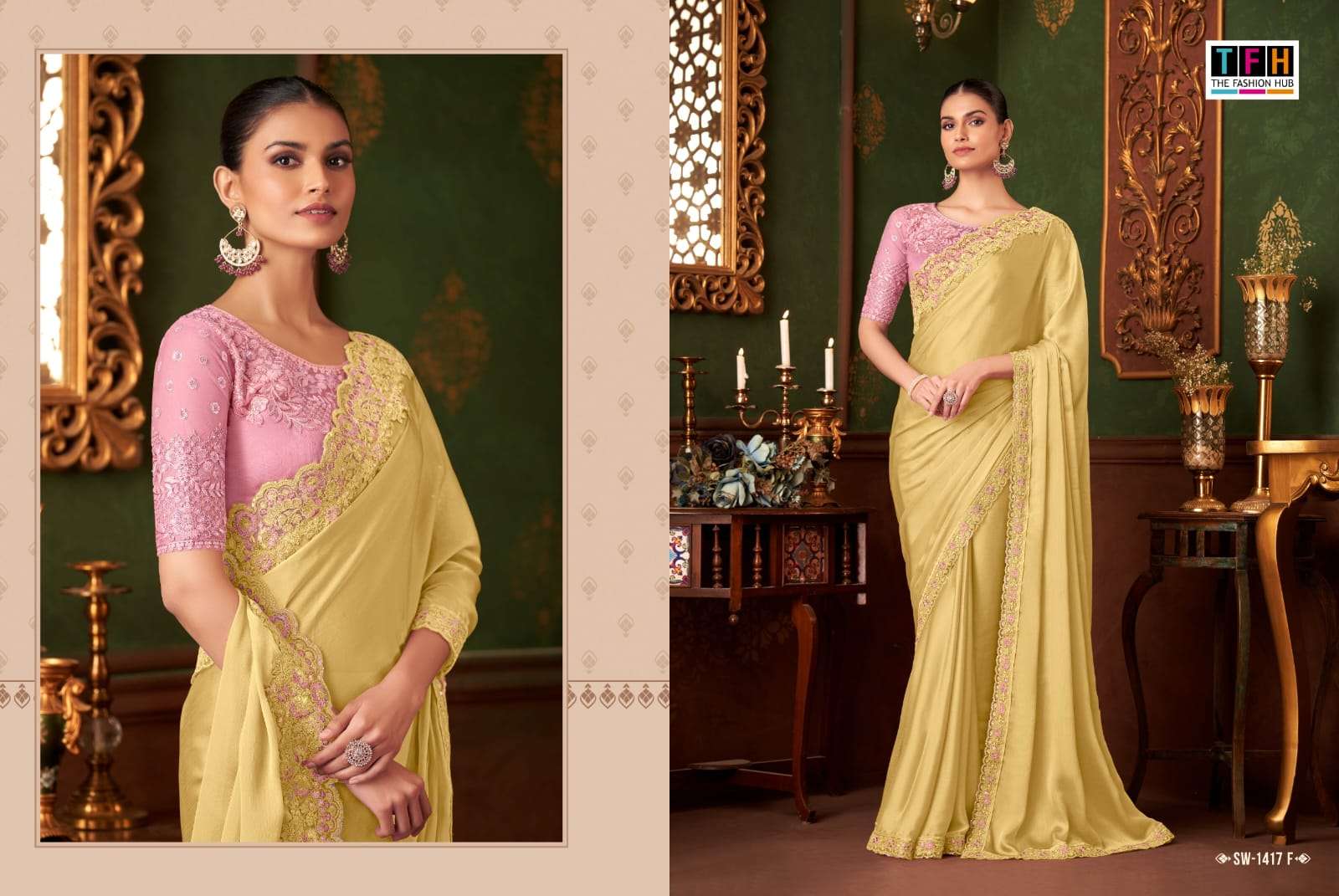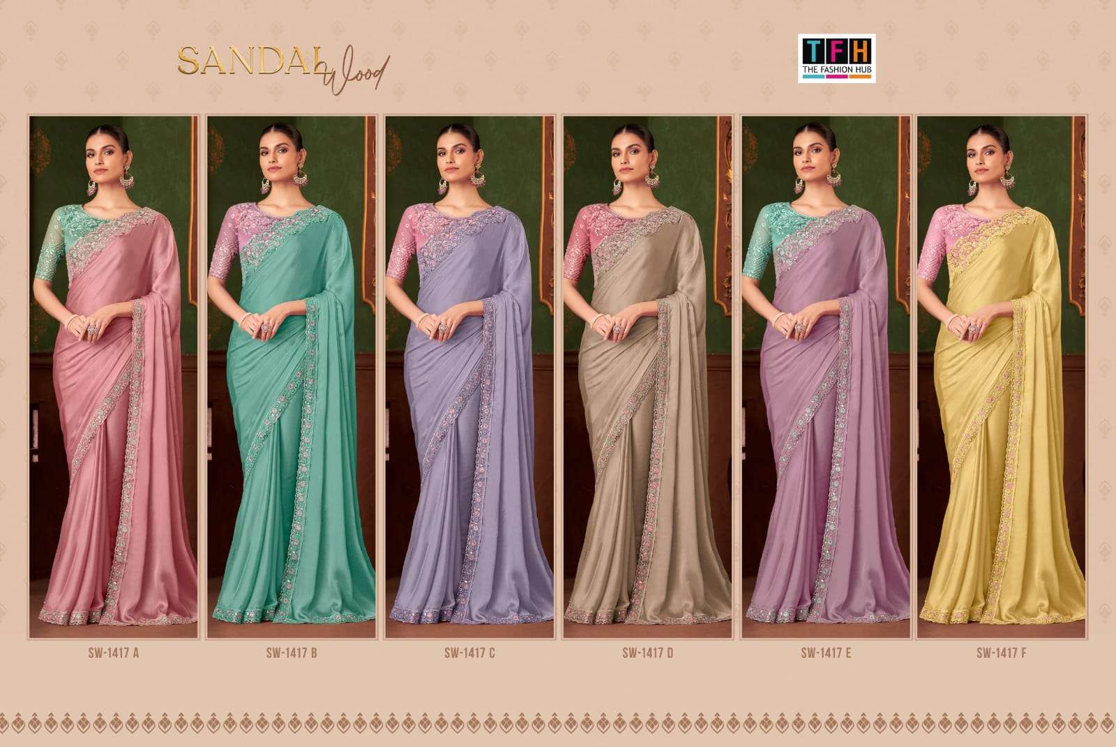 Buy Online SANDAL WOOD 14 by TFH SILK CHIFFON saree collection manufacturer Surat 6 Pcs of Full Catalogue at Wholesale Price. Looking for SANDAL WOOD 14 by TFH SILK CHIFFON saree collection manufacturer Surat Full Catalouge at Best Price? Buy Now SANDAL WOOD 14 by TFH SILK CHIFFON saree collection manufacturer Surat at Wholesale Rate of Rs 11166 with Total 6 Pcs from authroized dealer and supplier of TFH Brand. Cost of Each piece is just only Rs 1861 which is very low and affordable price to resale the product in your retail store ,This is Surat based Wholesale Supplier & Dealer of TFH Brand. Click on Brand name to Know more about TFH Brand's products.Call or Whatsapp on 9898838984 for booking or enquiry