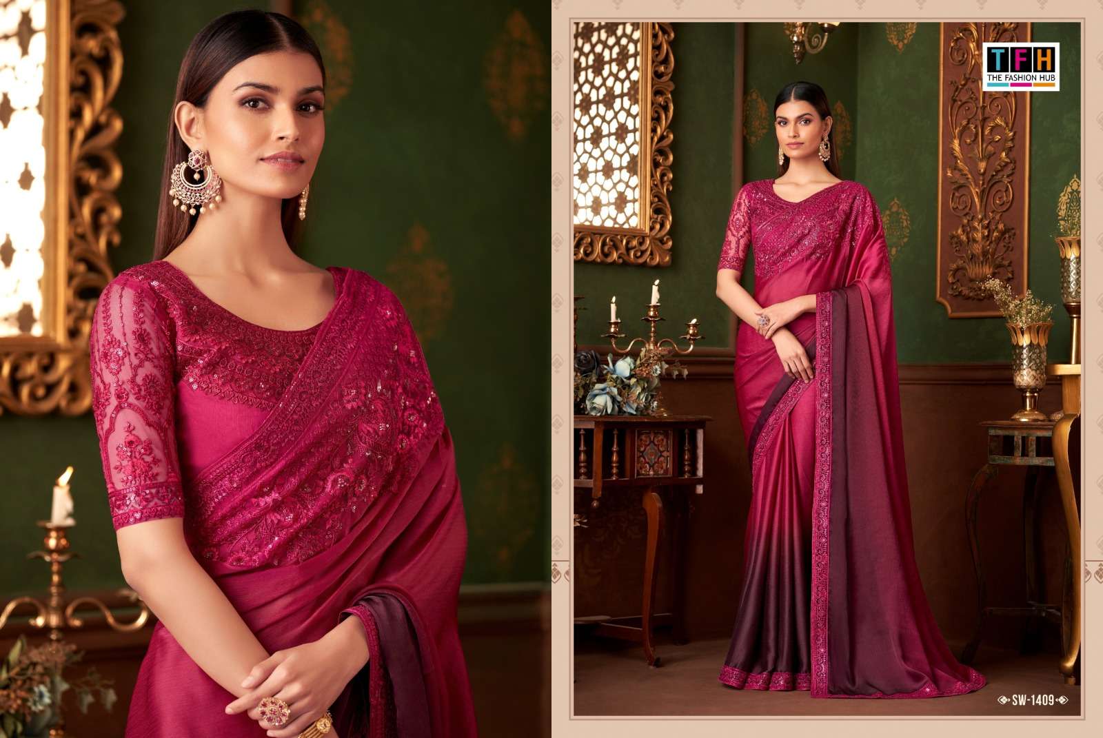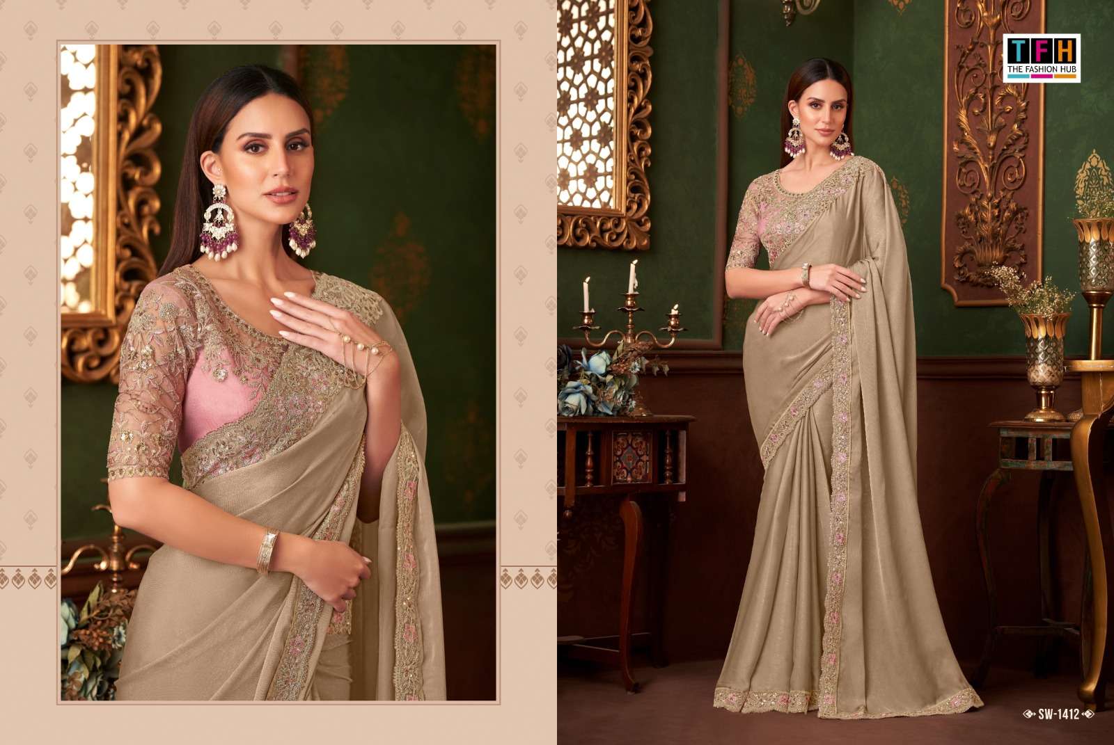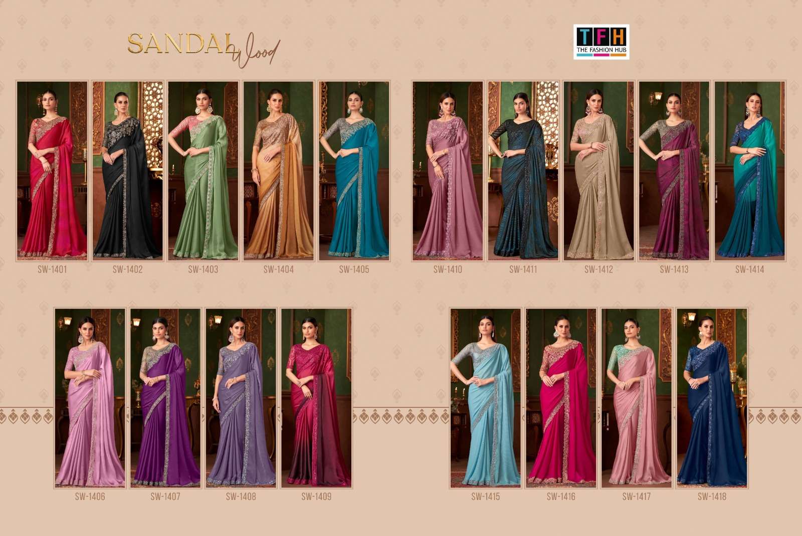 SANDAL WOOD 14 SERIES 1401 TO 1418 by TFH PARTY WEAR saree SANDAL WOOD 14 SERIES 1401 TO 1418 by TFH PARTY WEAR saree creation manufacturer surat creation manufacturer surat