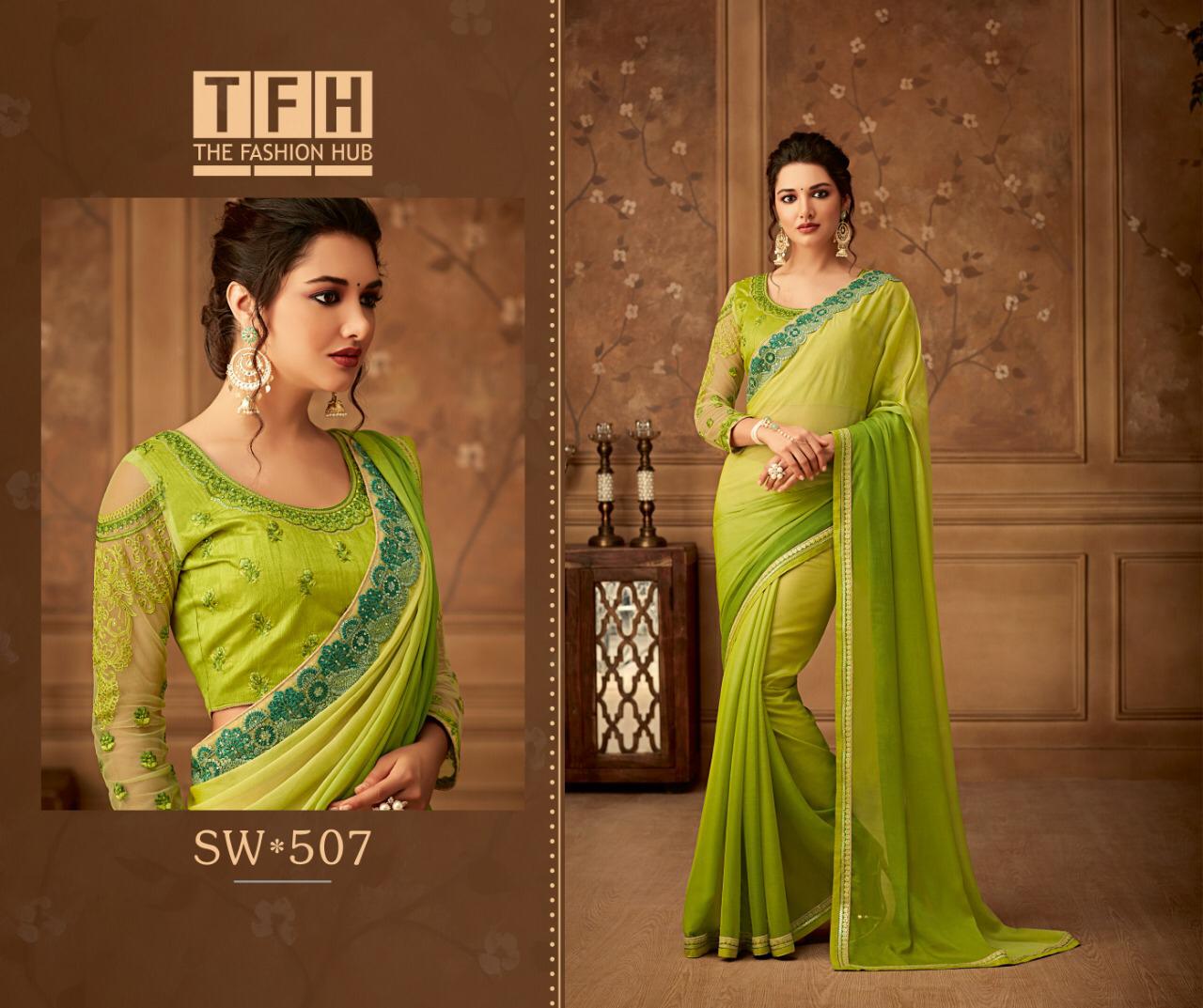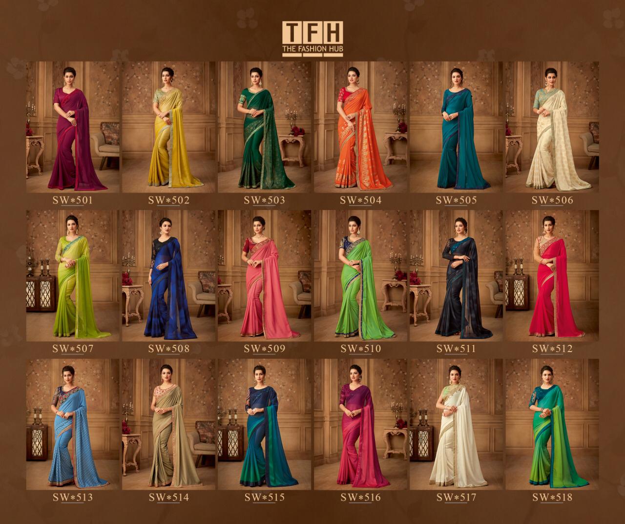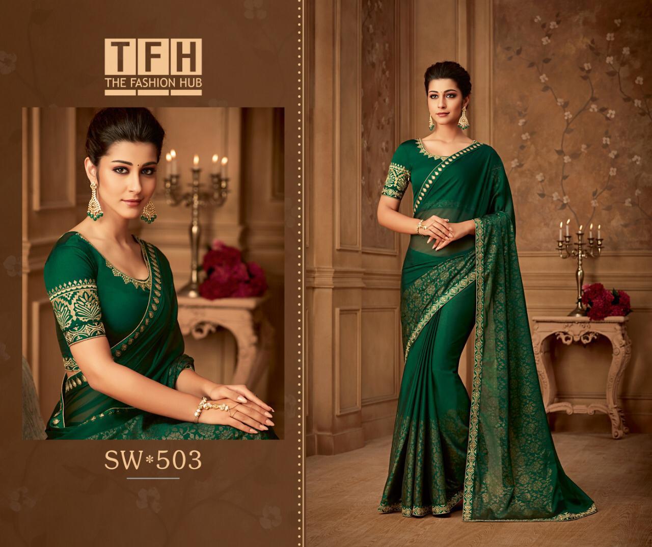 Buy Online Sandalwood 5 Edition By Tfh Series 501 Fancy Designer Party Wear Sarees Wholesale Supplier And Dealer Surat 18 Pcs of Full Catalogue at Wholesale Price. Looking for Sandalwood 5 Edition By Tfh Series 501 Fancy Designer Party Wear Sarees Wholesale Supplier And Dealer Surat Full Catalouge at Best Price? Buy Now Sandalwood 5 Edition By Tfh Series 501 Fancy Designer Party Wear Sarees Wholesale Supplier And Dealer Surat at Wholesale Rate of Rs 27900 with Total 18 Pcs from authroized dealer and supplier of TFH Brand. Cost of Each piece is just only Rs 1550 which is very low and affordable price to resale the product in your retail store ,This is Surat based Wholesale Supplier & Dealer of TFH Brand. Click on Brand name to Know more about TFH Brand's products.Call or Whatsapp on 9898838984 for booking or enquiry