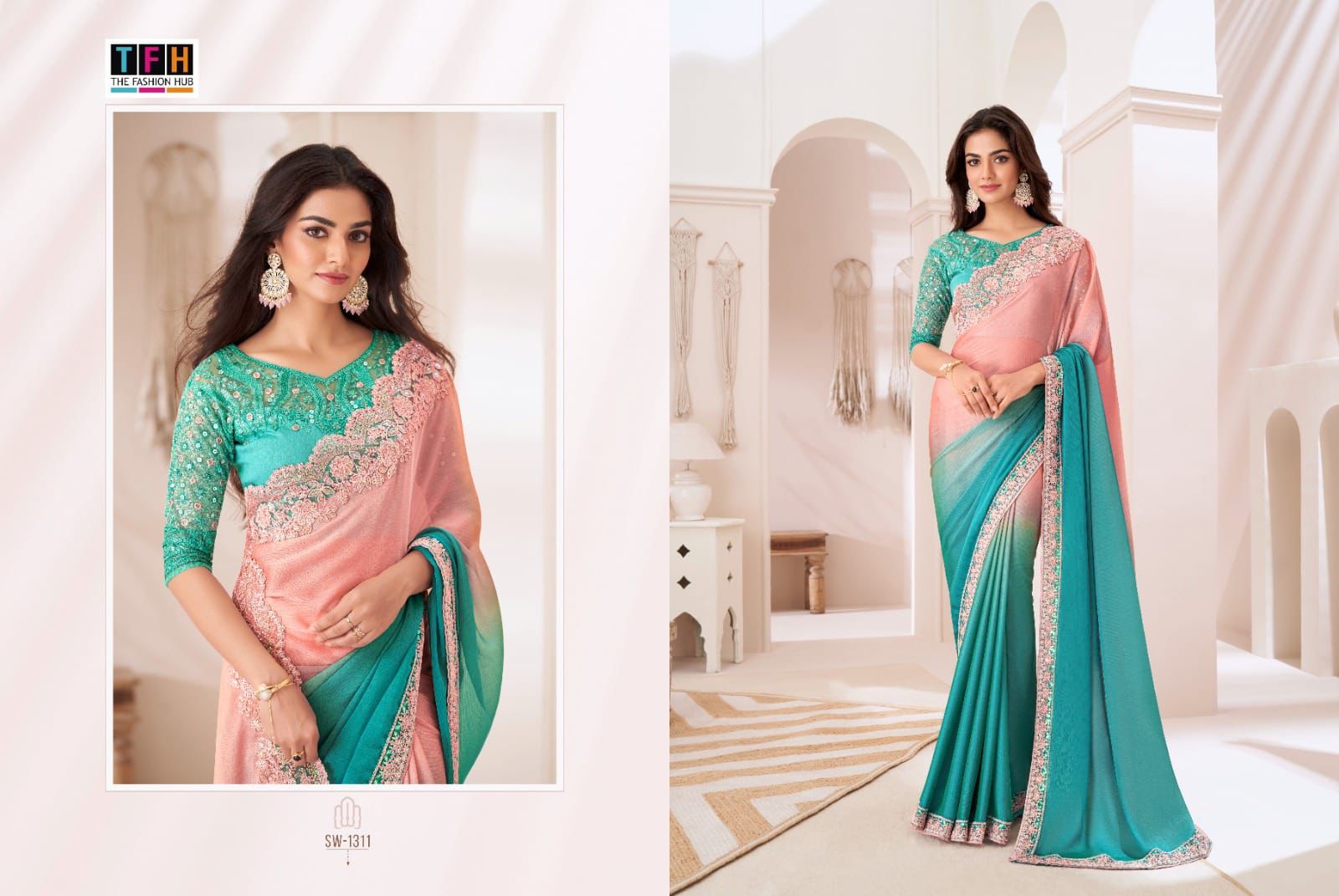 Buy Online Sandalwood Series 1301 To 1318 By Tfh Designer Saree Collection Manufacturer Surat 18 Pcs of Full Catalogue at Wholesale Price. Looking for Sandalwood Series 1301 To 1318 By Tfh Designer Saree Collection Manufacturer Surat Full Catalouge at Best Price? Buy Now Sandalwood Series 1301 To 1318 By Tfh Designer Saree Collection Manufacturer Surat at Wholesale Rate of Rs 0 with Total 18 Pcs from authroized dealer and supplier of TFH Brand. Cost of Each piece is just only Rs 0 which is very low and affordable price to resale the product in your retail store ,This is Surat based Wholesale Supplier & Dealer of TFH Brand. Click on Brand name to Know more about TFH Brand's products.Call or Whatsapp on 9898838984 for booking or enquiry