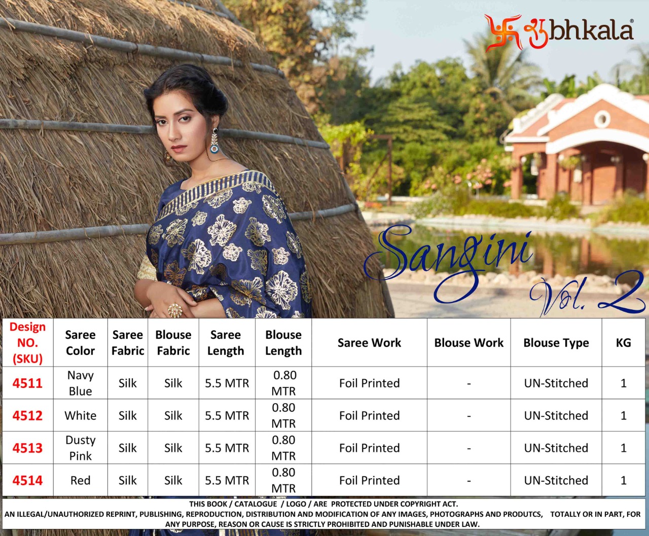 Buy Online Sangini Vol 2 By Shubhkala Series 4511 To 4514 Single And Set Stockiest And Supplier From Surat 4 Pcs of Full Catalogue at Wholesale Price. Looking for Sangini Vol 2 By Shubhkala Series 4511 To 4514 Single And Set Stockiest And Supplier From Surat Full Catalouge at Best Price? Buy Now Sangini Vol 2 By Shubhkala Series 4511 To 4514 Single And Set Stockiest And Supplier From Surat at Wholesale Rate of Rs 4800 with Total 4 Pcs from authroized dealer and supplier of Brand. Cost of Each piece is just only Rs 1200 which is very low and affordable price to resale the product in your retail store ,This is Surat based Wholesale Supplier & Dealer of Brand. Click on Brand name to Know more about Brand's products.Call or Whatsapp on 9898838984 for booking or enquiry
