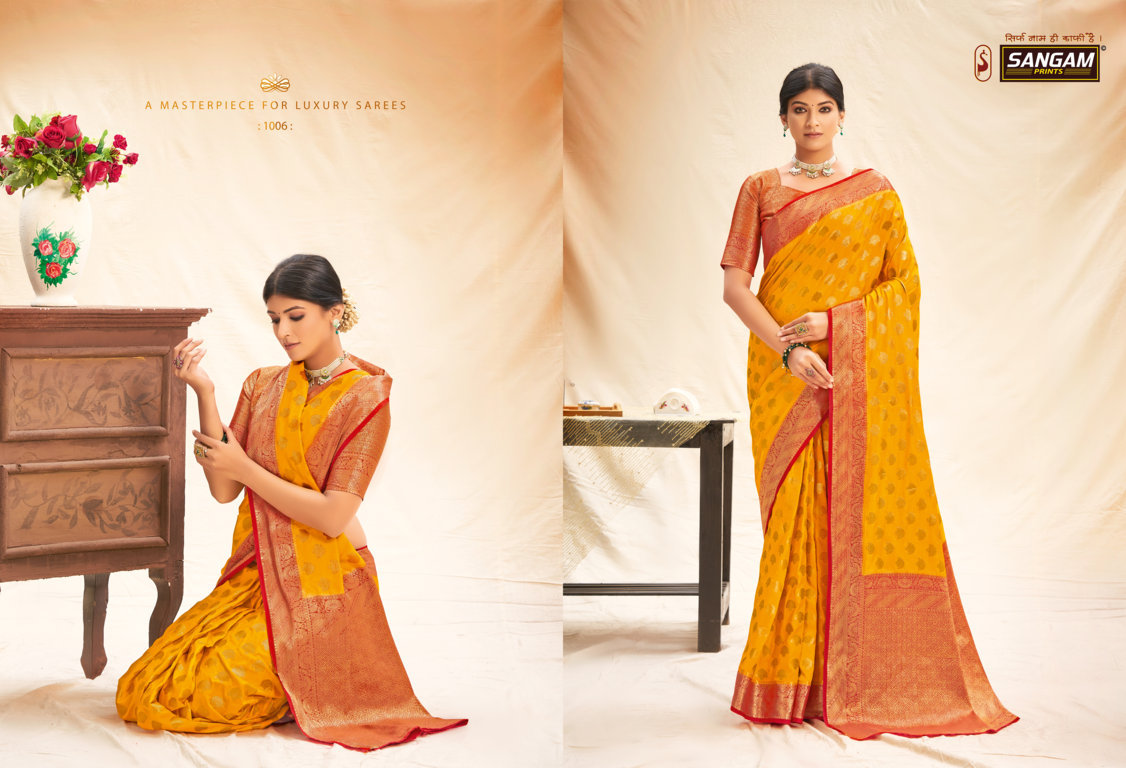 Buy Online Sangneri Silk By Sangam Prints Single Available Wholesaler Supplier From Surat 6 Pcs of Full Catalogue at Wholesale Price. Looking for Sangneri Silk By Sangam Prints Single Available Wholesaler Supplier From Surat Full Catalouge at Best Price? Buy Now Sangneri Silk By Sangam Prints Single Available Wholesaler Supplier From Surat at Wholesale Rate of Rs 7920 with Total 6 Pcs from authroized dealer and supplier of SANGAM Brand. Cost of Each piece is just only Rs 1320 which is very low and affordable price to resale the product in your retail store ,This is Surat based Wholesale Supplier & Dealer of SANGAM Brand. Click on Brand name to Know more about SANGAM Brand's products.Call or Whatsapp on 9898838984 for booking or enquiry