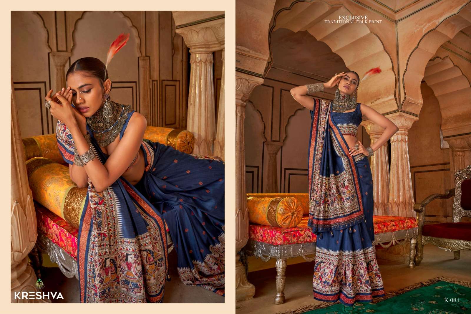 Buy Online Sannari Series 079 To 088 by Kreshva Viscose Silk saree collection manufacturer surat 10 Pcs of Full Catalogue at Wholesale Price. Looking for Sannari Series 079 To 088 by Kreshva Viscose Silk saree collection manufacturer surat Full Catalouge at Best Price? Buy Now Sannari Series 079 To 088 by Kreshva Viscose Silk saree collection manufacturer surat at Wholesale Rate of Rs 16950 with Total 10 Pcs from authroized dealer and supplier of KRESHVA Brand. Cost of Each piece is just only Rs 1695 which is very low and affordable price to resale the product in your retail store ,This is Surat based Wholesale Supplier & Dealer of KRESHVA Brand. Click on Brand name to Know more about KRESHVA Brand's products.Call or Whatsapp on 9898838984 for booking or enquiry