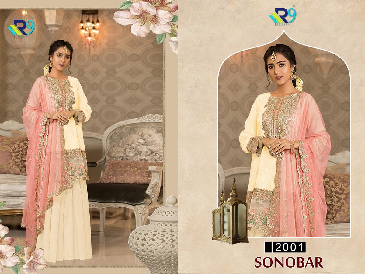 Sanobar By R9 2001 Series Fancy Designer Georgette Pakistani Style Suit Collection Wholesaler Surat