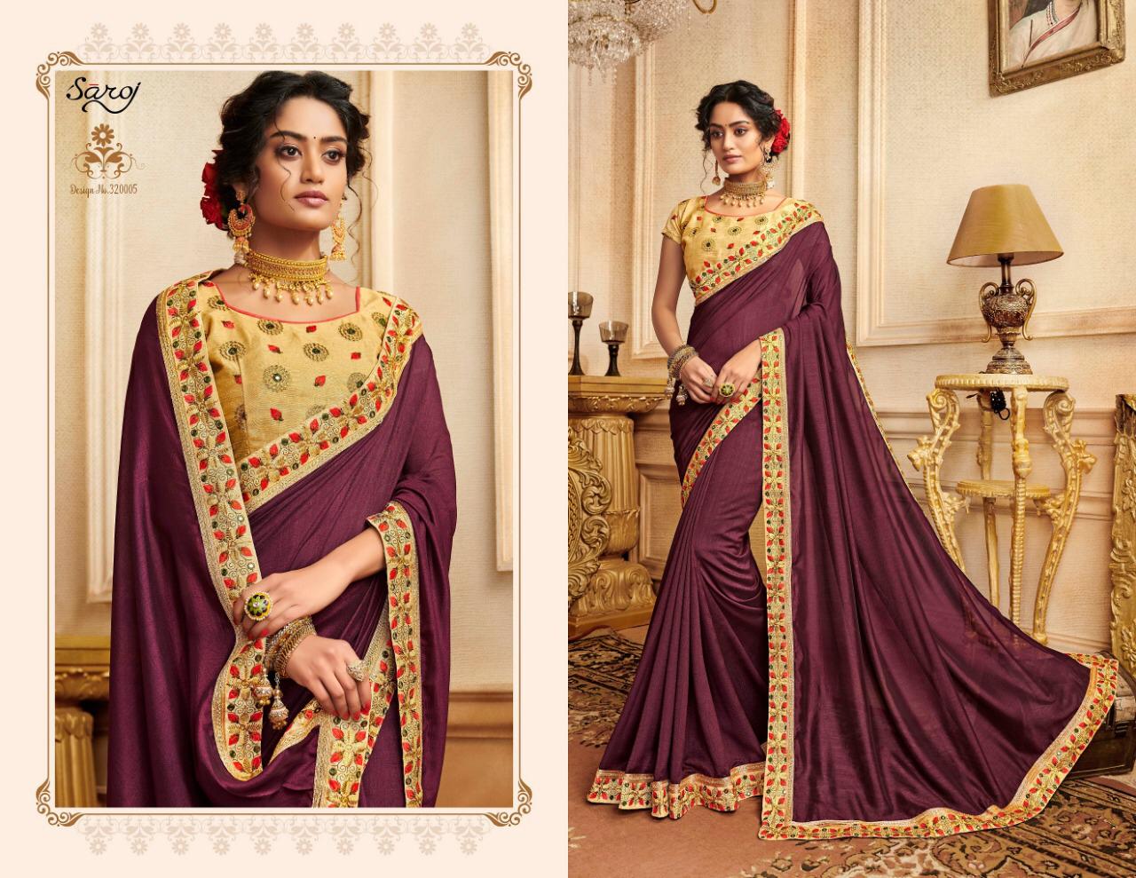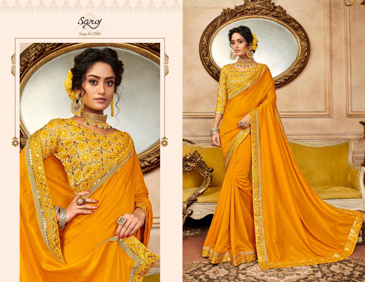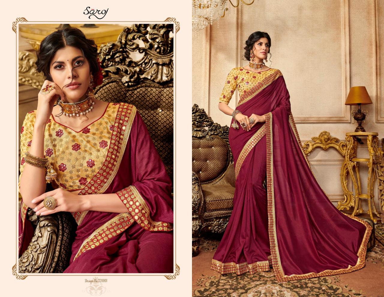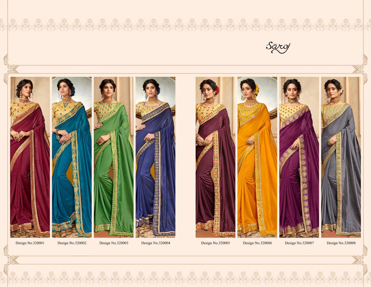 Buy Online Sanskar By Saroj Series 320001 To 320008 Vichitra Silk Sarees Wholesale Supplier Gujarat 8 Pcs of Full Catalogue at Wholesale Price. Looking for Sanskar By Saroj Series 320001 To 320008 Vichitra Silk Sarees Wholesale Supplier Gujarat Full Catalouge at Best Price? Buy Now Sanskar By Saroj Series 320001 To 320008 Vichitra Silk Sarees Wholesale Supplier Gujarat at Wholesale Rate of Rs 7880 with Total 8 Pcs from authroized dealer and supplier of SAROJ SAREE Brand. Cost of Each piece is just only Rs 985 which is very low and affordable price to resale the product in your retail store ,This is Surat based Wholesale Supplier & Dealer of SAROJ SAREE Brand. Click on Brand name to Know more about SAROJ SAREE Brand's products.Call or Whatsapp on 9898838984 for booking or enquiry