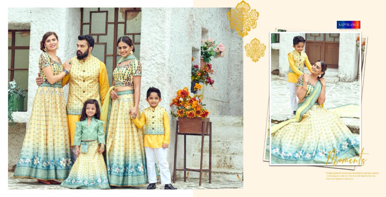 Saptrangi series 1201 to 1209 mother daughter boy and man COLLECTION wholesale supplier single pieces stockiest and dealer Brand - Saptrangi. Catlogue series - 1201 to 1209. Delivery from tomorrow 12% gst extra Unstich Lehanga With Can can Kurta & Bottom with Jacket ( MEN ) Kurta & Bottom with Jacket ( Boy ) |