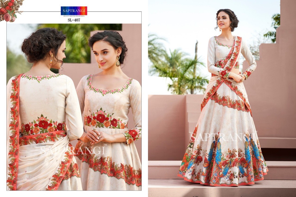 Buy Online Saptrangi Signeture Collection Season 4 401 Series Lehanga 9 Pcs of Full Catalogue at Wholesale Price. Looking for Saptrangi Signeture Collection Season 4 401 Series Lehanga Full Catalouge at Best Price? Buy Now Saptrangi Signeture Collection Season 4 401 Series Lehanga at Wholesale Rate of Rs 35991 with Total 9 Pcs from authroized dealer and supplier of SAPTARANGI Brand. Cost of Each piece is just only Rs 3999 which is very low and affordable price to resale the product in your retail store ,This is Surat based Wholesale Supplier & Dealer of SAPTARANGI Brand. Click on Brand name to Know more about SAPTARANGI Brand's products.Call or Whatsapp on 9898838984 for booking or enquiry