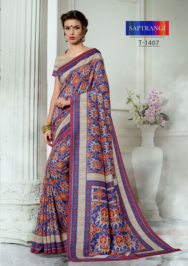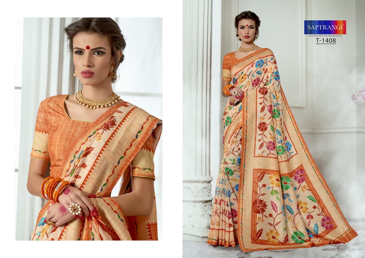 Saptrangi Tussar Silk Vol 1 1401 Series Silk Printed Saree Catlog Wholesale Dealer And Supplier Surat