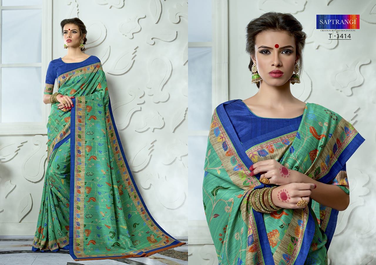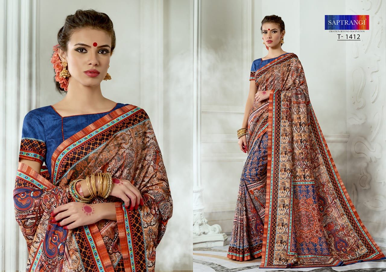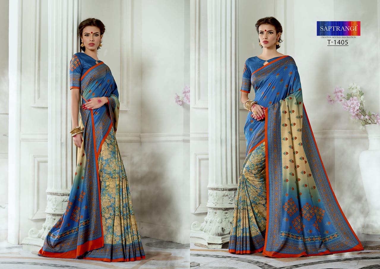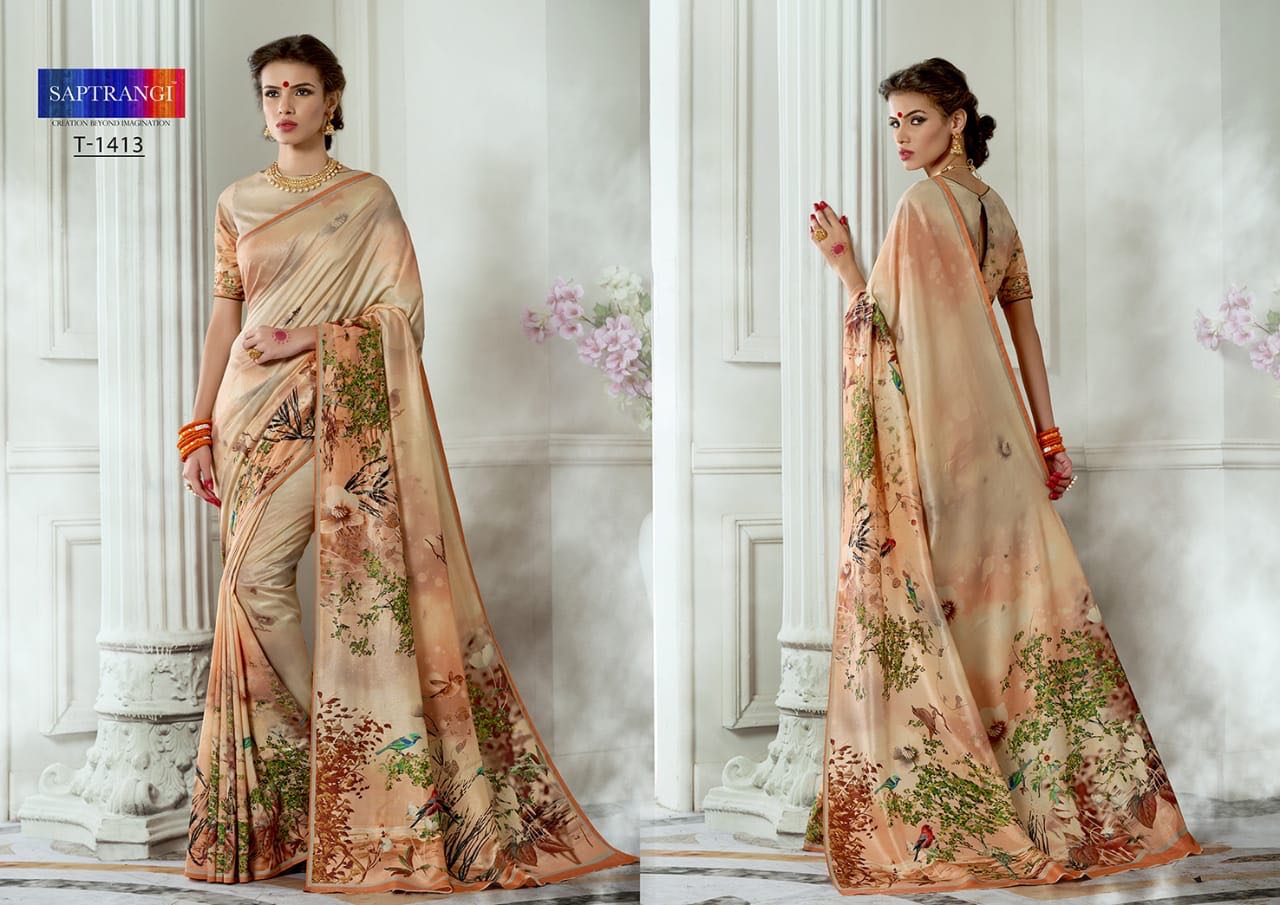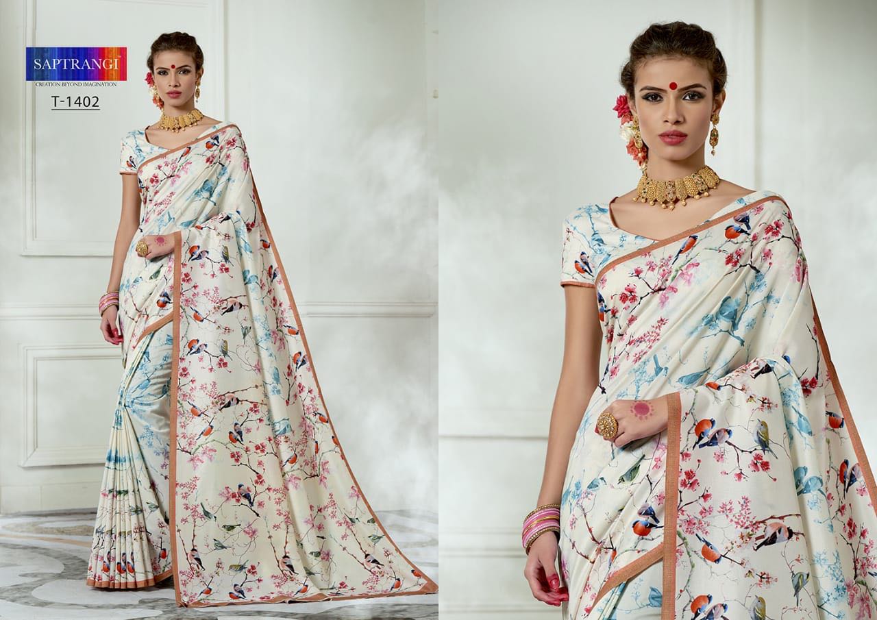 Brand - Saptrangi. Series - T-1401 to T-1414. Set & Loose . GST 5 Percent Extra. Delivery date -25-08-18. Book your order now . For singleÂ?s price call or whatsapp on +919898838984 |