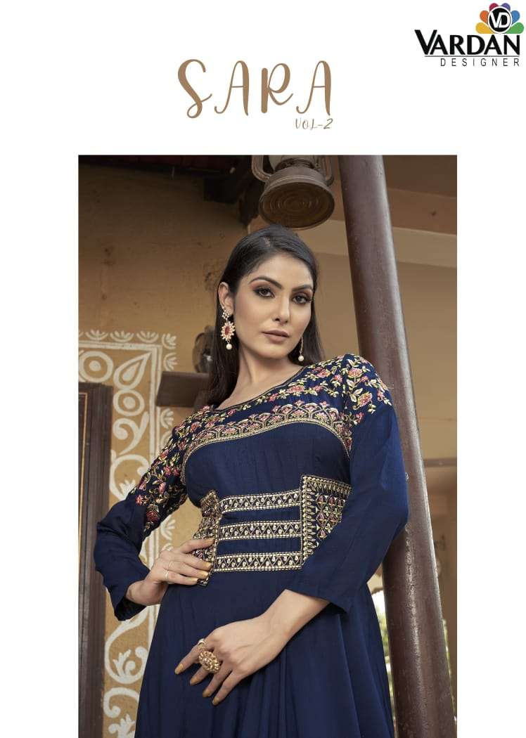 Buy Online SARA Vol 2 by Vardan Designer gown collection manufacturer surat 2 Pcs of Full Catalogue at Wholesale Price. Looking for SARA Vol 2 by Vardan Designer gown collection manufacturer surat Full Catalouge at Best Price? Buy Now SARA Vol 2 by Vardan Designer gown collection manufacturer surat at Wholesale Rate of Rs 2100 with Total 2 Pcs from authroized dealer and supplier of VARDAN DESIGNER Brand. Cost of Each piece is just only Rs 1050 which is very low and affordable price to resale the product in your retail store ,This is Surat based Wholesale Supplier & Dealer of VARDAN DESIGNER Brand. Click on Brand name to Know more about VARDAN DESIGNER Brand's products.Call or Whatsapp on 9898838984 for booking or enquiry