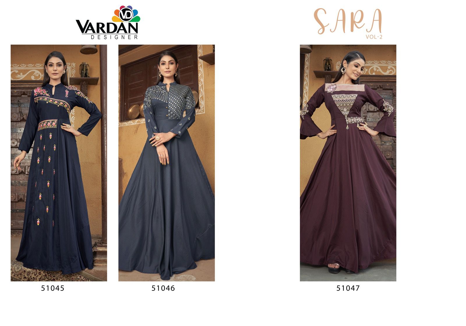 Buy Online Sara Vol 2 Vardan Designer Readymade Collection Long Gown Anarkali Dress 3 Pcs of Full Catalogue at Wholesale Price. Looking for Sara Vol 2 Vardan Designer Readymade Collection Long Gown Anarkali Dress Full Catalouge at Best Price? Buy Now Sara Vol 2 Vardan Designer Readymade Collection Long Gown Anarkali Dress at Wholesale Rate of Rs 0 with Total 3 Pcs from authroized dealer and supplier of VARDAN DESIGNER Brand. Cost of Each piece is just only Rs 0 which is very low and affordable price to resale the product in your retail store ,This is Surat based Wholesale Supplier & Dealer of VARDAN DESIGNER Brand. Click on Brand name to Know more about VARDAN DESIGNER Brand's products.Call or Whatsapp on 9898838984 for booking or enquiry