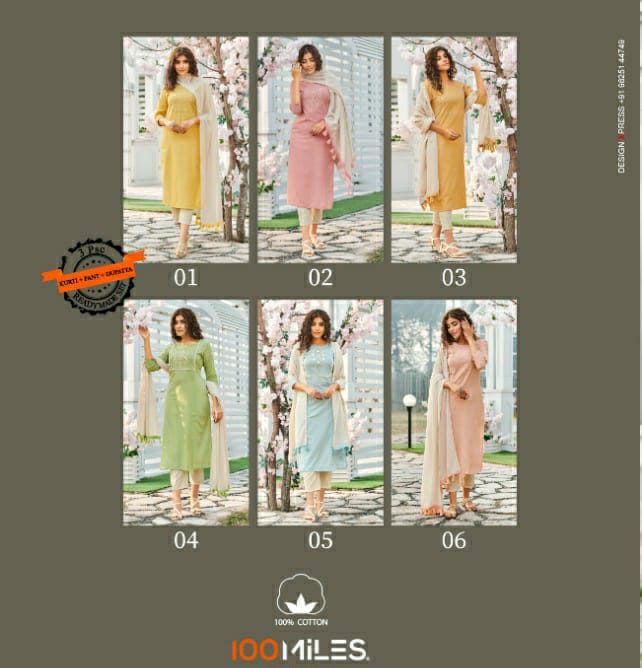 Buy Online Sarang Top With Bottom And Dupatta By 100 Miles Manufacturer And Dealer From All Over India 6 Pcs of Full Catalogue at Wholesale Price. Looking for Sarang Top With Bottom And Dupatta By 100 Miles Manufacturer And Dealer From All Over India Full Catalouge at Best Price? Buy Now Sarang Top With Bottom And Dupatta By 100 Miles Manufacturer And Dealer From All Over India at Wholesale Rate of Rs 4920 with Total 6 Pcs from authroized dealer and supplier of Brand. Cost of Each piece is just only Rs 820 which is very low and affordable price to resale the product in your retail store ,This is Surat based Wholesale Supplier & Dealer of Brand. Click on Brand name to Know more about Brand's products.Call or Whatsapp on 9898838984 for booking or enquiry