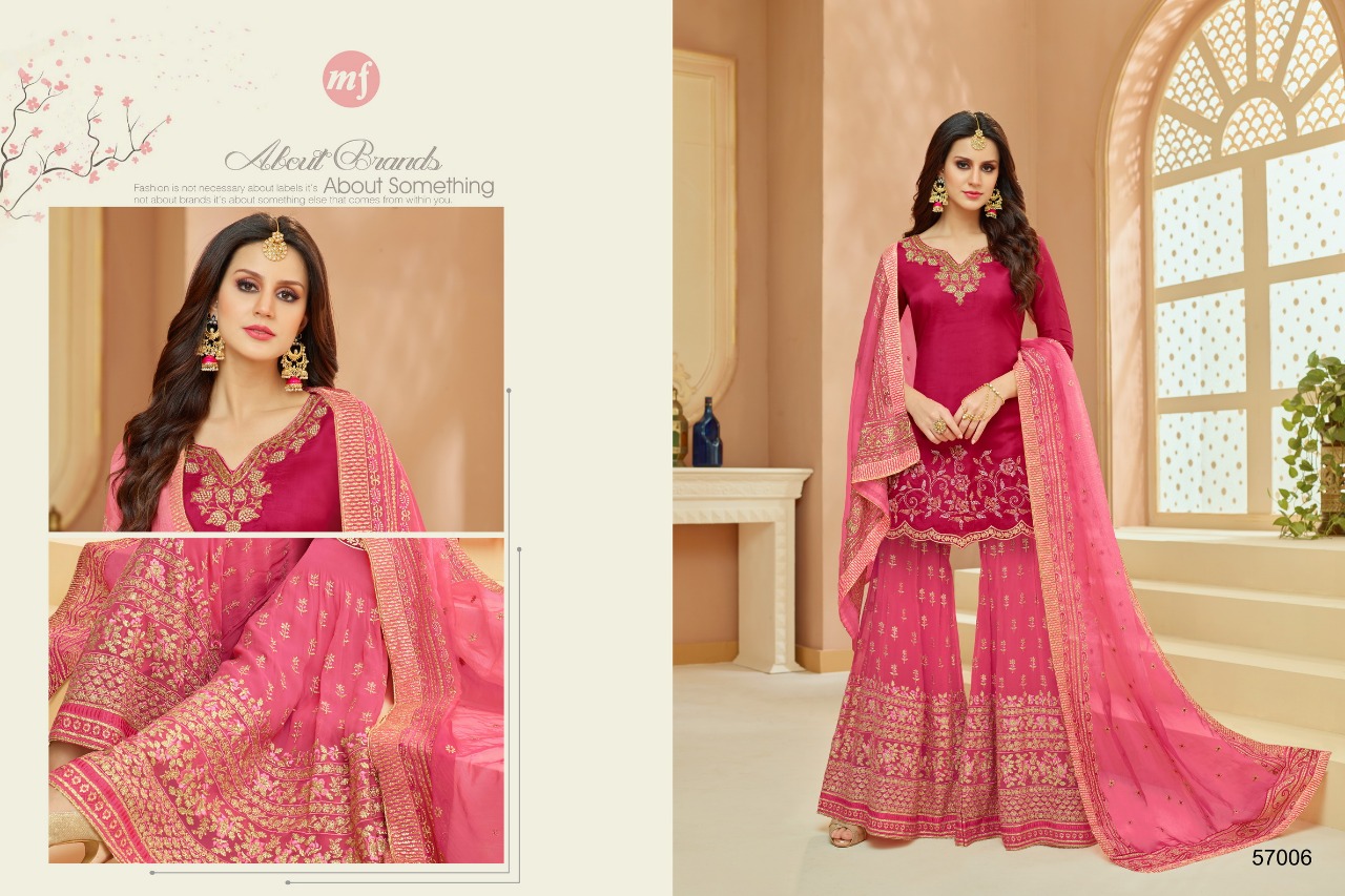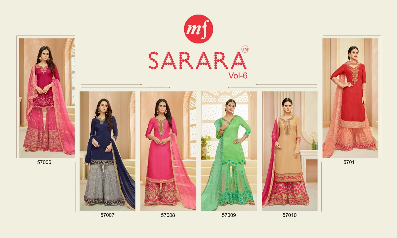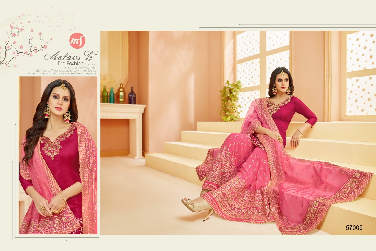 Sarara Vol 6 By Mf Fashion Series 57006 To 57011 Upada Silk Embroidered Desinger Party Wear Suits Wholesale Supplier And Dealer Gujarat