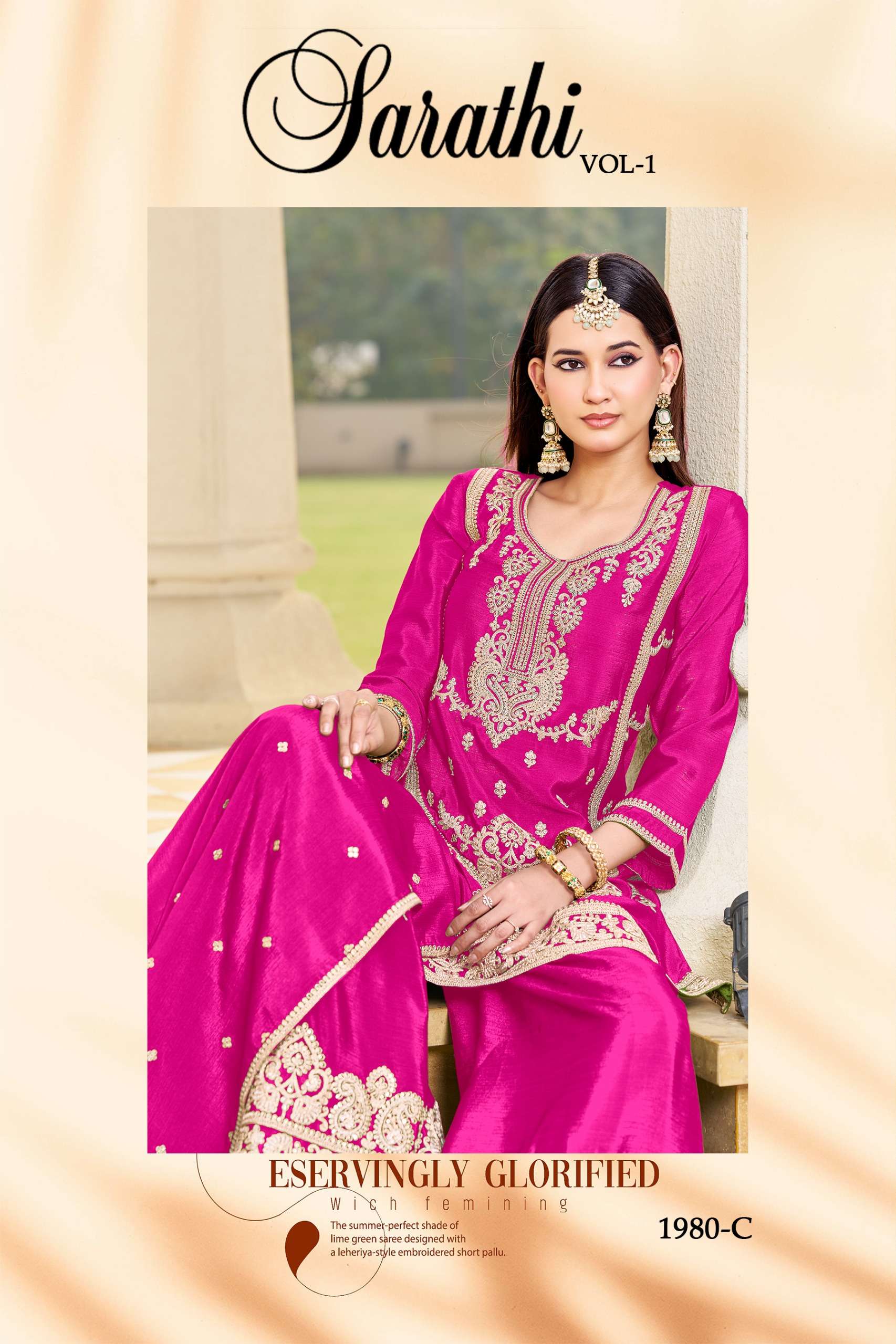 Presents For This season Presenting Exclusive Super Hit Coding collection Catalogue Name:- *SARATHI Vol-1* *(4 Pcs )* *(D.NO.1980A To 1980D)*