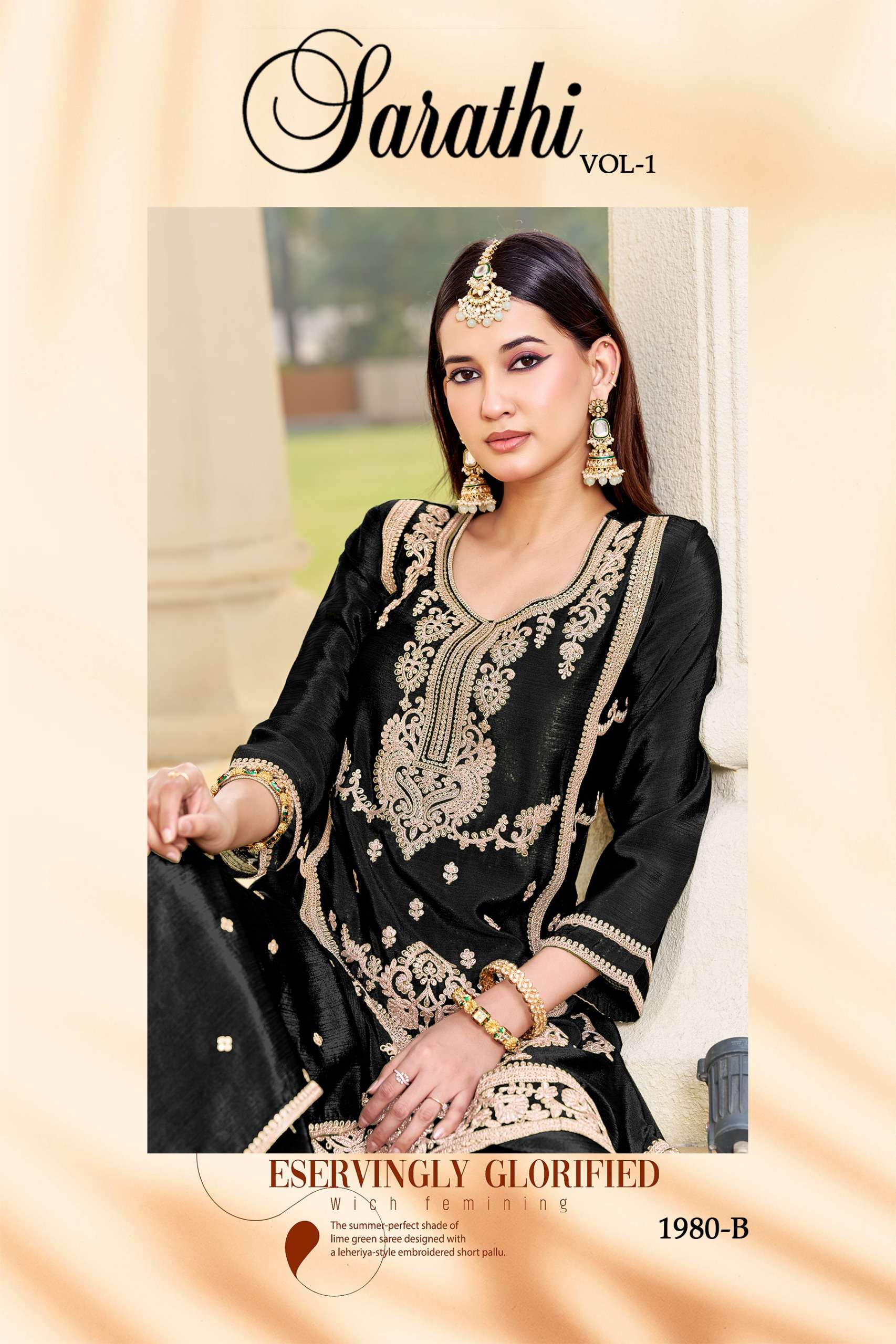 Presents For This season Presenting Exclusive Super Hit Coding collection Catalogue Name:- *SARATHI Vol-1* *(4 Pcs )* *(D.NO.1980A To 1980D)*