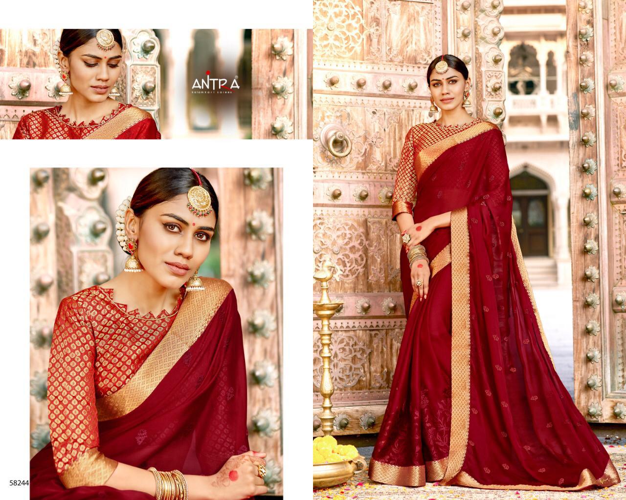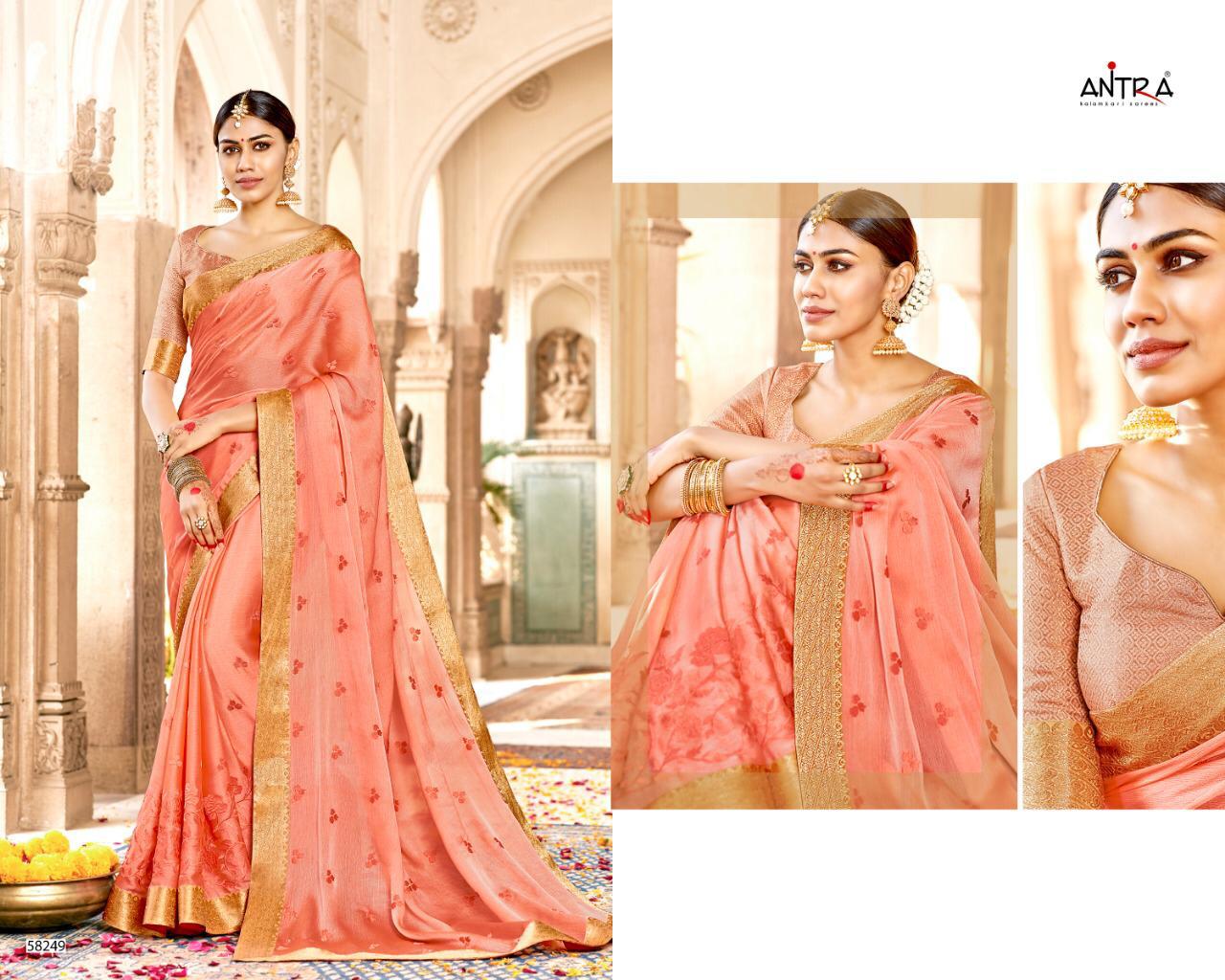 Sargam By Antra Lifestyle 58241 Series Fancy Moss Chiffon Saree With Fancy Penal Work Wholesaler Surat
