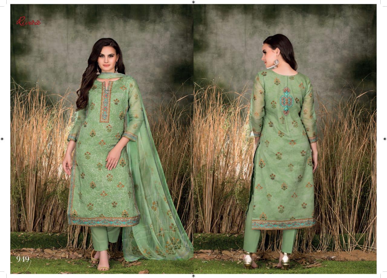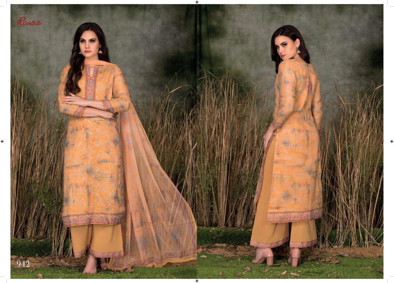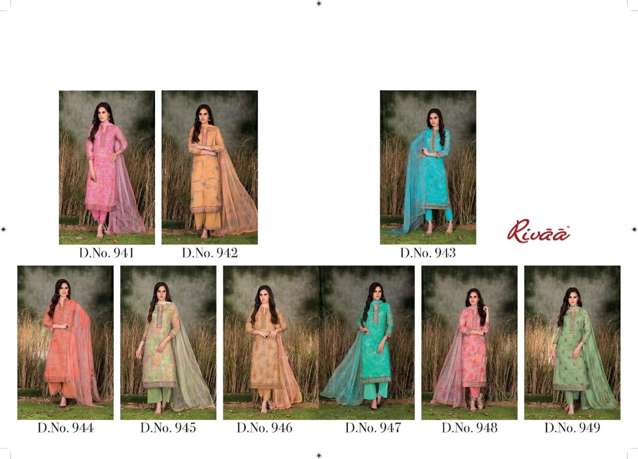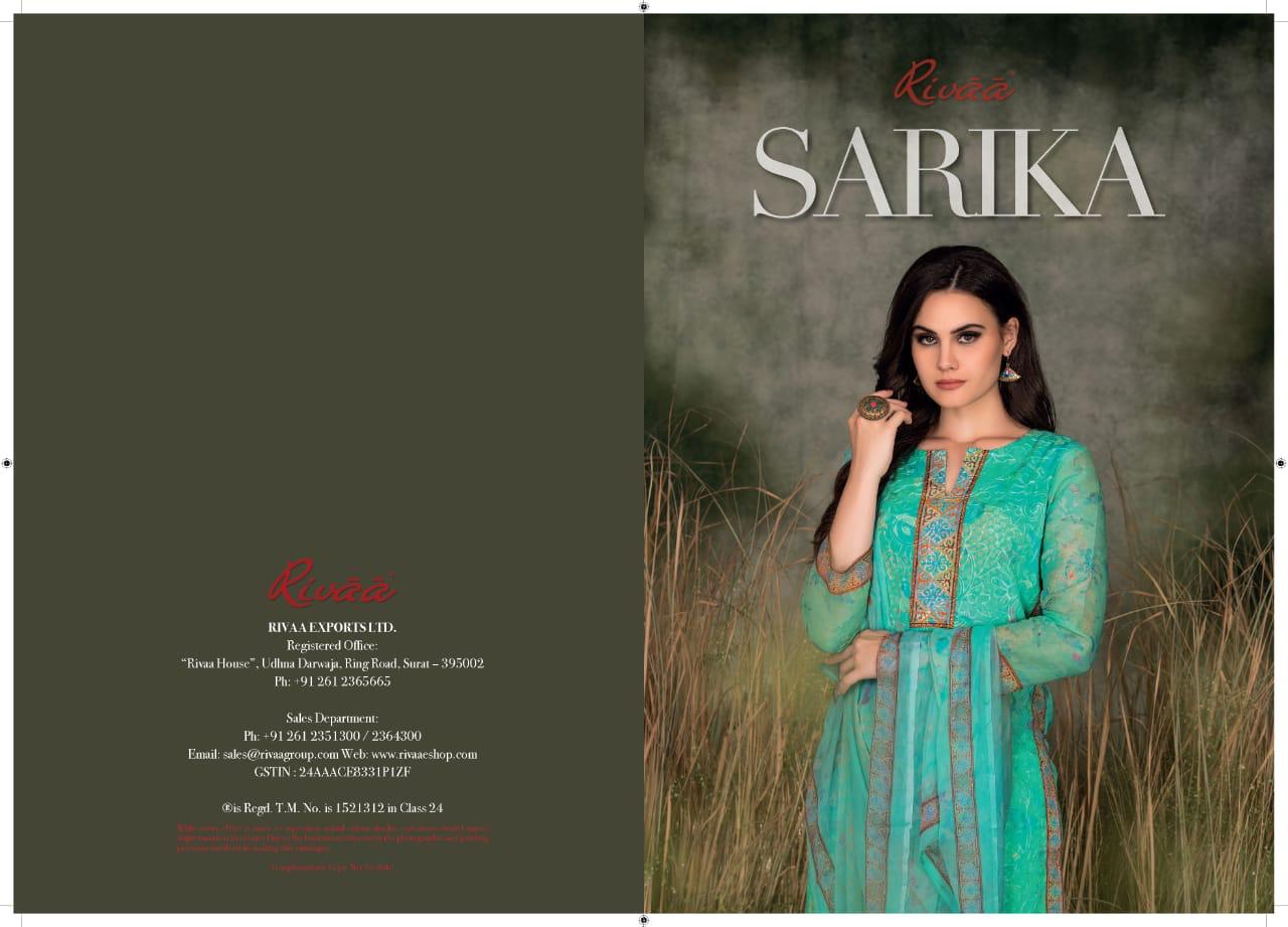 Buy Online Sarika By Rivaa Embroidered Designer Party Wear Suits Wholesale Supplier Surat 9 Pcs of Full Catalogue at Wholesale Price. Looking for Sarika By Rivaa Embroidered Designer Party Wear Suits Wholesale Supplier Surat Full Catalouge at Best Price? Buy Now Sarika By Rivaa Embroidered Designer Party Wear Suits Wholesale Supplier Surat at Wholesale Rate of Rs 12195 with Total 9 Pcs from authroized dealer and supplier of RIVAA Brand. Cost of Each piece is just only Rs 1355 which is very low and affordable price to resale the product in your retail store ,This is Surat based Wholesale Supplier & Dealer of RIVAA Brand. Click on Brand name to Know more about RIVAA Brand's products.Call or Whatsapp on 9898838984 for booking or enquiry