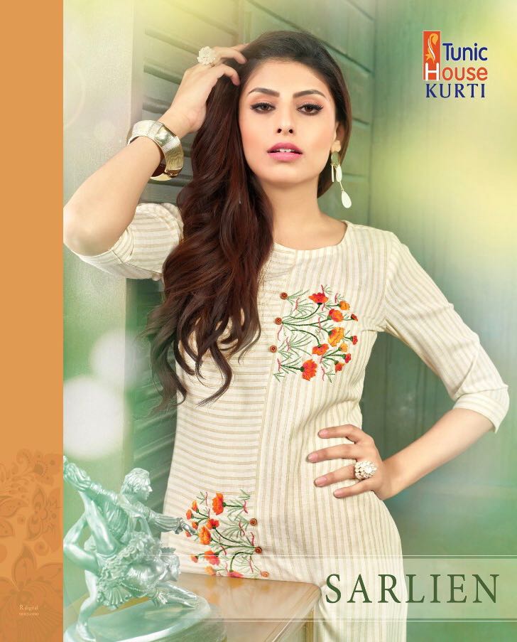 Buy Online Sarlien By Tunic House Cotton Handloom Embroidered Designer Kurtis Catalog Wholesale Supplier And Dealer India 6 Pcs of Full Catalogue at Wholesale Price. Looking for Sarlien By Tunic House Cotton Handloom Embroidered Designer Kurtis Catalog Wholesale Supplier And Dealer India Full Catalouge at Best Price? Buy Now Sarlien By Tunic House Cotton Handloom Embroidered Designer Kurtis Catalog Wholesale Supplier And Dealer India at Wholesale Rate of Rs 3450 with Total 6 Pcs from authroized dealer and supplier of TUNIC HOUSE Brand. Cost of Each piece is just only Rs 575 which is very low and affordable price to resale the product in your retail store ,This is Surat based Wholesale Supplier & Dealer of TUNIC HOUSE Brand. Click on Brand name to Know more about TUNIC HOUSE Brand's products.Call or Whatsapp on 9898838984 for booking or enquiry