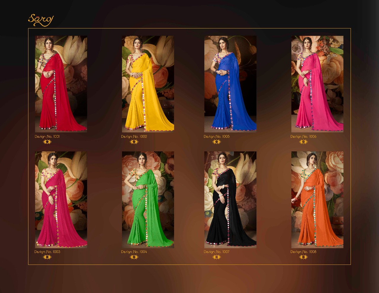 Buy Online Saroj Shinning Star 1001 Series Nazanin Saree Heavy Blouse 8 Pcs of Full Catalogue at Wholesale Price. Looking for Saroj Shinning Star 1001 Series Nazanin Saree Heavy Blouse Full Catalouge at Best Price? Buy Now Saroj Shinning Star 1001 Series Nazanin Saree Heavy Blouse at Wholesale Rate of Rs 8760 with Total 8 Pcs from authroized dealer and supplier of SAROJ SAREE Brand. Cost of Each piece is just only Rs 1095 which is very low and affordable price to resale the product in your retail store ,This is Surat based Wholesale Supplier & Dealer of SAROJ SAREE Brand. Click on Brand name to Know more about SAROJ SAREE Brand's products.Call or Whatsapp on 9898838984 for booking or enquiry