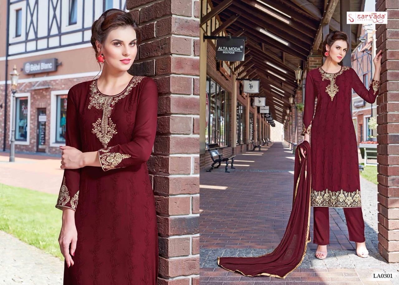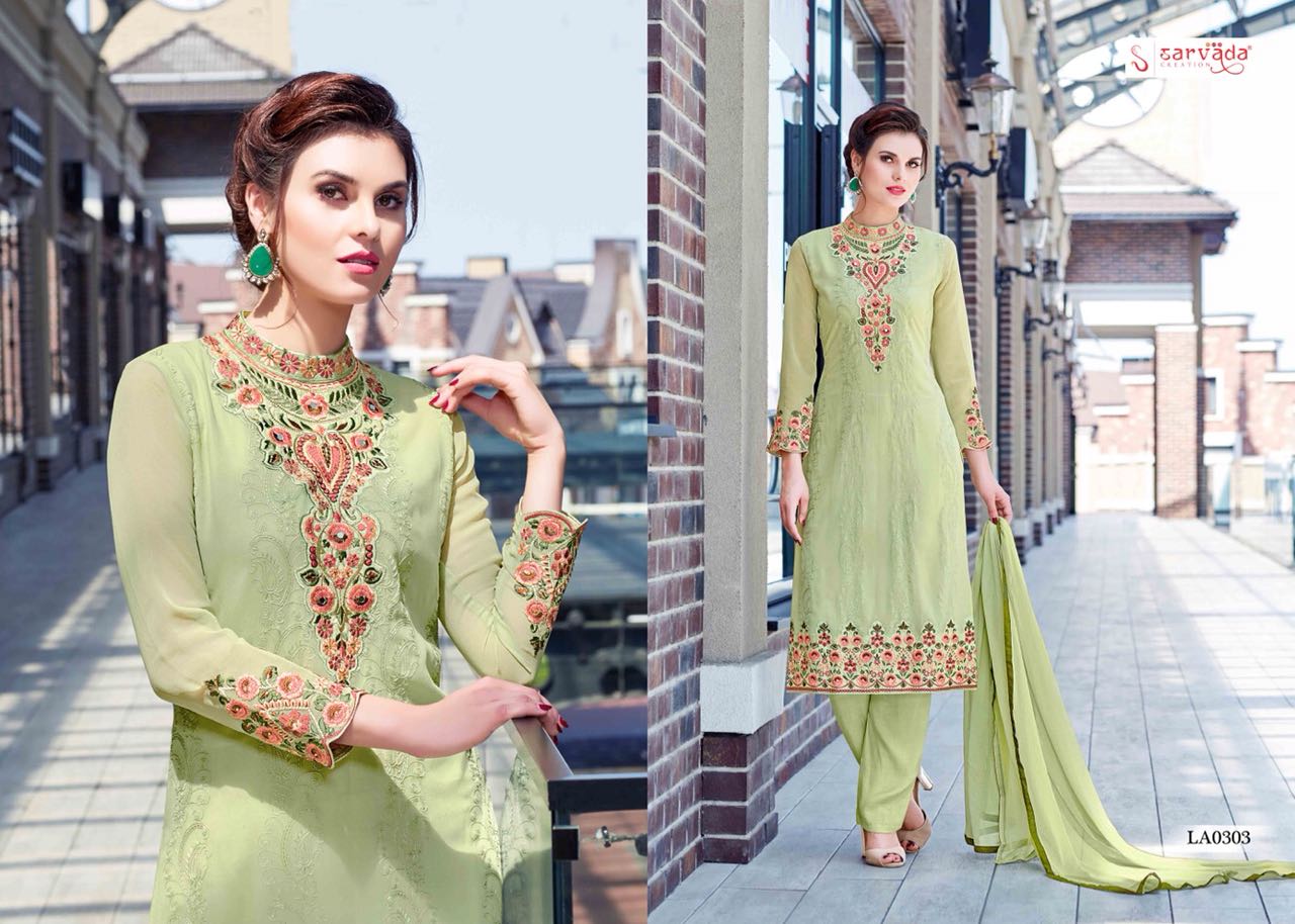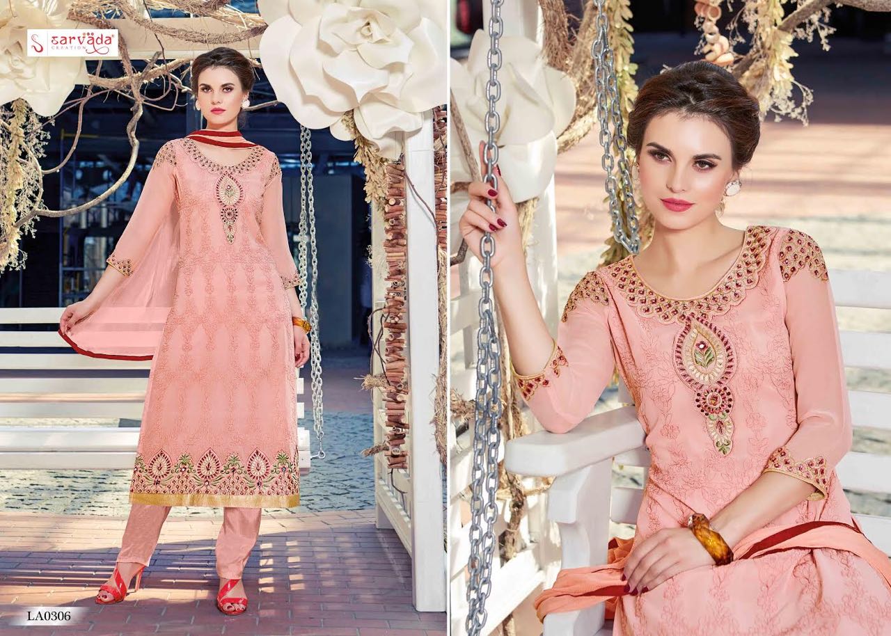 Sarvada Lamis Vol 3 301 Series Georgette Emb Suit Dealer