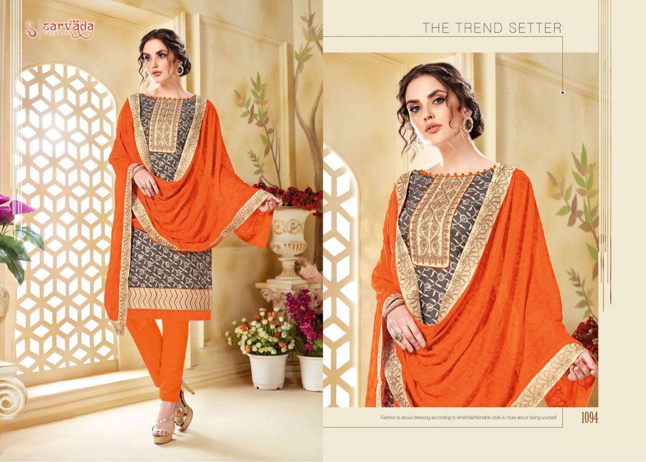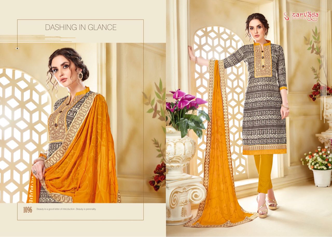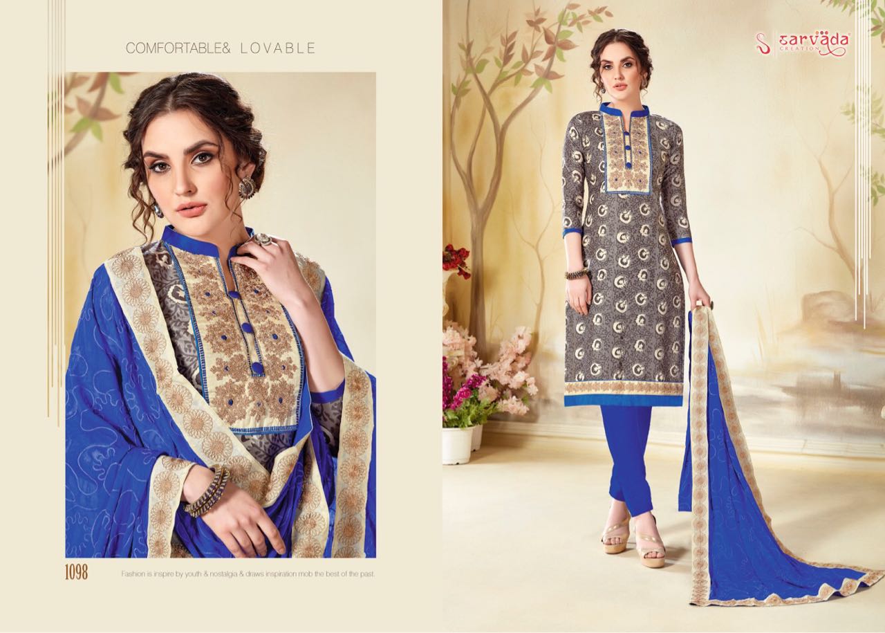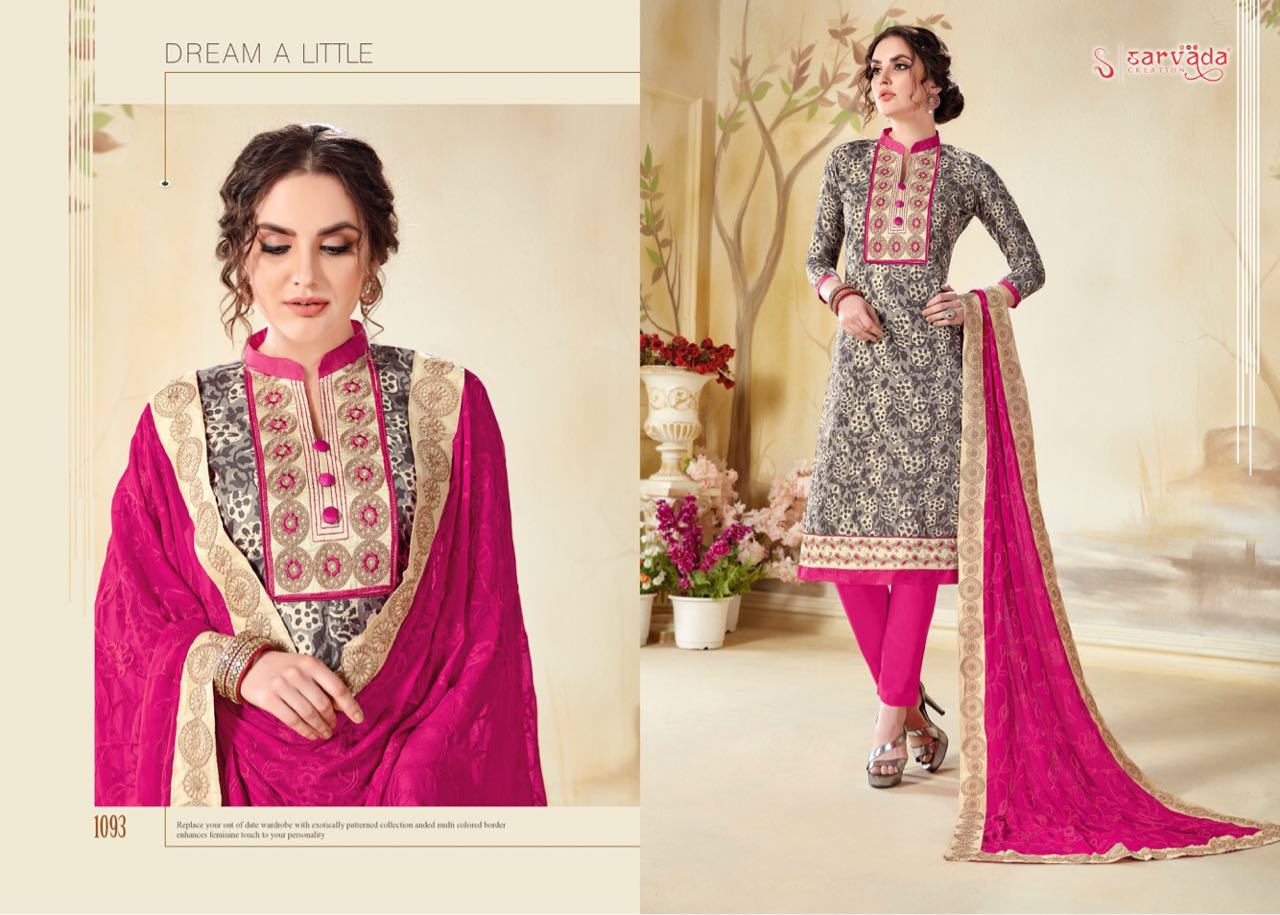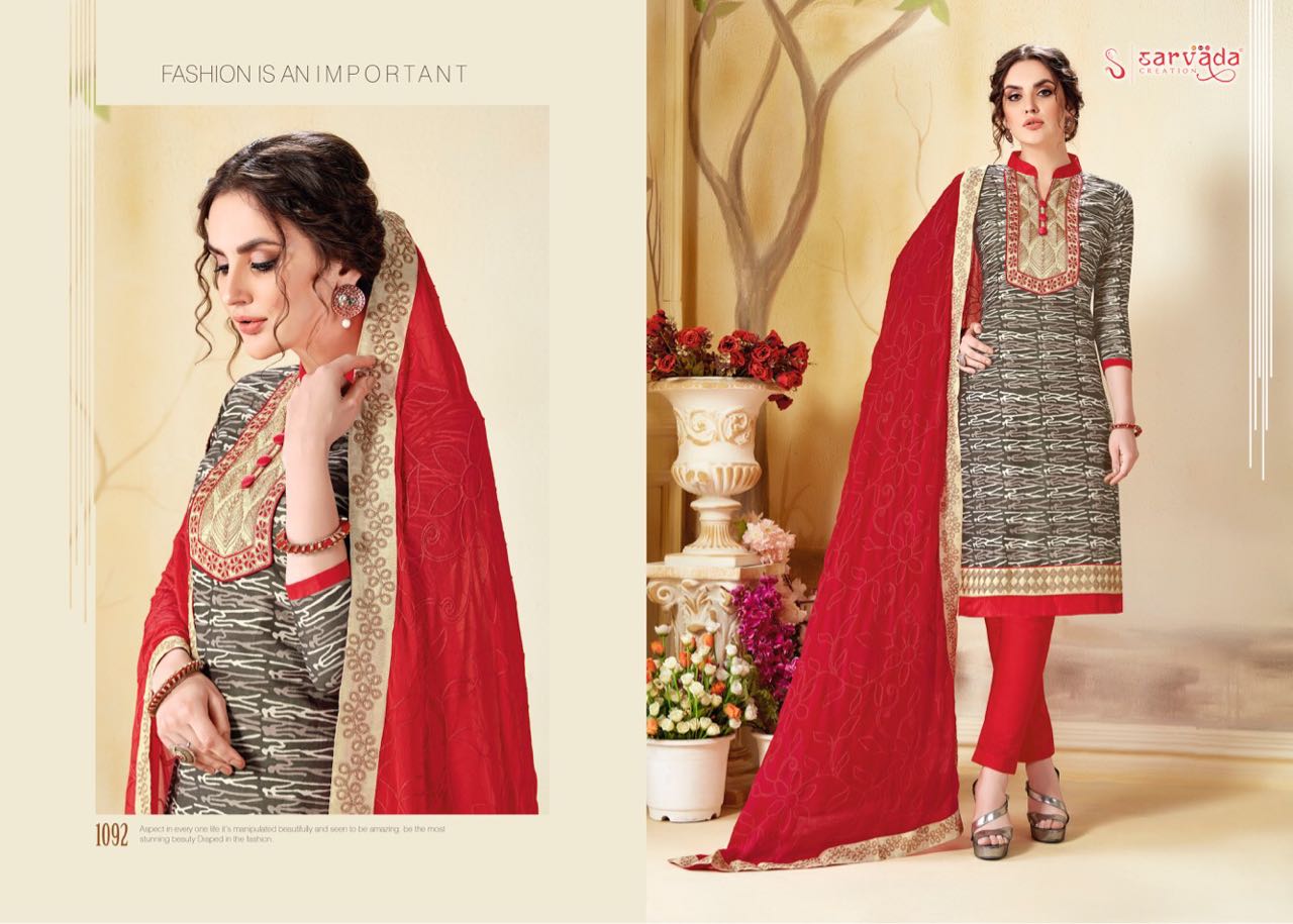 Buy Online Sarvada Pooja 1092 Series Cambric Cotton Salwar Kameez Catlog Wholesale Dealer Surat 8 Pcs of Full Catalogue at Wholesale Price. Looking for Sarvada Pooja 1092 Series Cambric Cotton Salwar Kameez Catlog Wholesale Dealer Surat Full Catalouge at Best Price? Buy Now Sarvada Pooja 1092 Series Cambric Cotton Salwar Kameez Catlog Wholesale Dealer Surat at Wholesale Rate of Rs 5160 with Total 8 Pcs from authroized dealer and supplier of SARVADA CREATION Brand. Cost of Each piece is just only Rs 645 which is very low and affordable price to resale the product in your retail store ,This is Surat based Wholesale Supplier & Dealer of SARVADA CREATION Brand. Click on Brand name to Know more about SARVADA CREATION Brand's products.Call or Whatsapp on 9898838984 for booking or enquiry