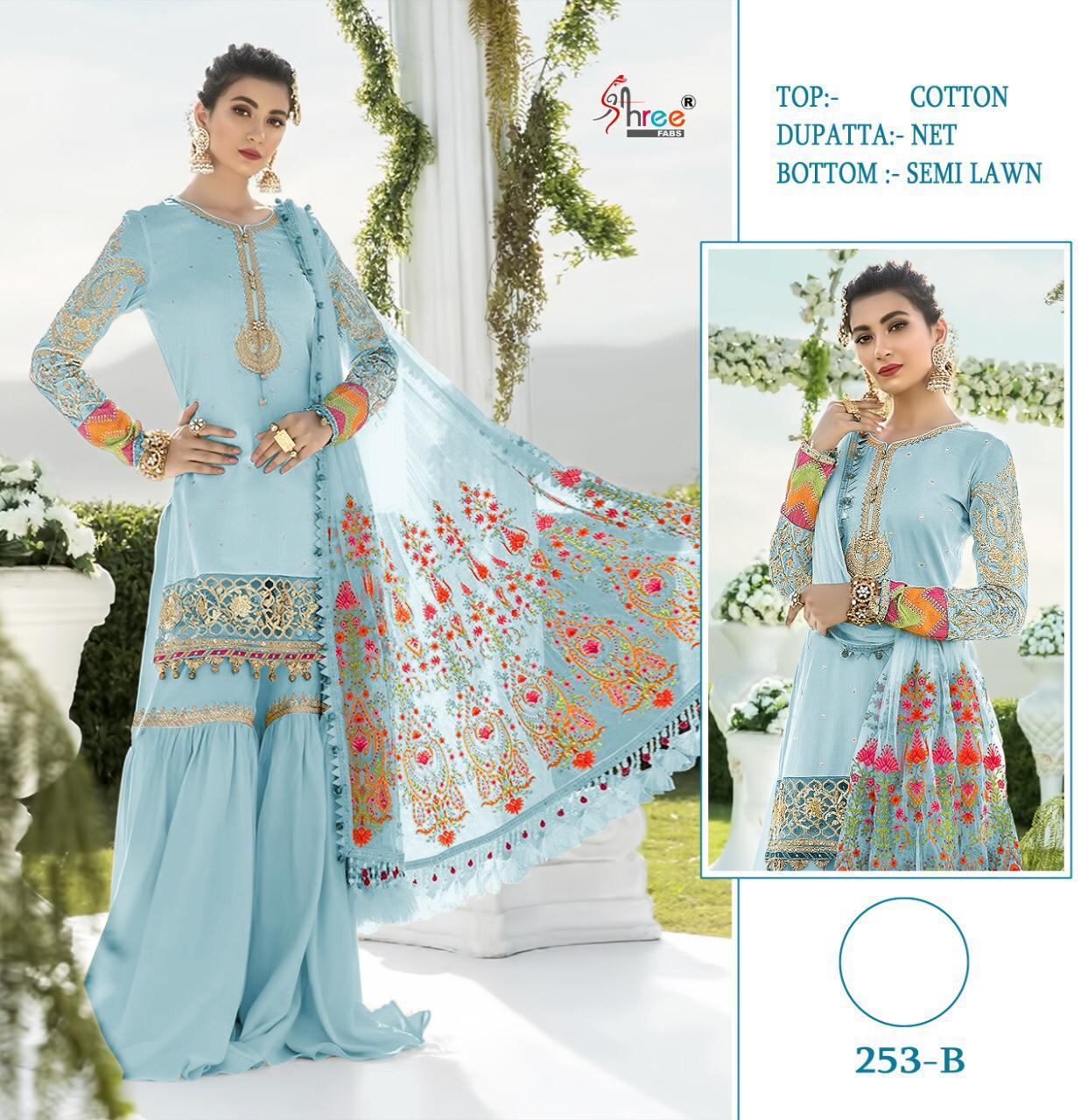 Sateen Mariya B Gold Collection D No 253 B To D By Shree Fabs Single And Set Stockiest And Supplier From Surat
