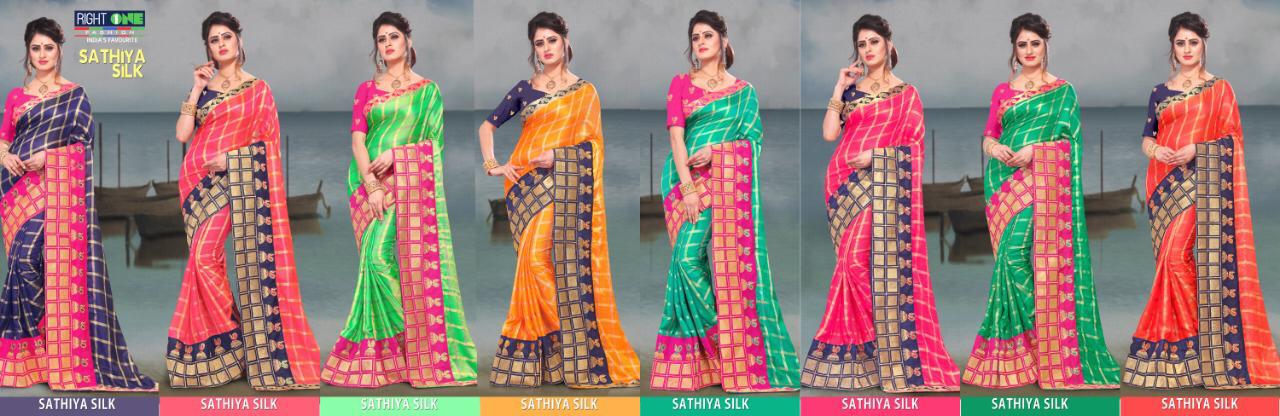 Buy Online Sathiya Silk By Right One Check Silk Sarees Wholesale Supplier And Trader Surat 8 Pcs of Full Catalogue at Wholesale Price. Looking for Sathiya Silk By Right One Check Silk Sarees Wholesale Supplier And Trader Surat Full Catalouge at Best Price? Buy Now Sathiya Silk By Right One Check Silk Sarees Wholesale Supplier And Trader Surat at Wholesale Rate of Rs 6600 with Total 8 Pcs from authroized dealer and supplier of Right one Brand. Cost of Each piece is just only Rs 825 which is very low and affordable price to resale the product in your retail store ,This is Surat based Wholesale Supplier & Dealer of Right one Brand. Click on Brand name to Know more about Right one Brand's products.Call or Whatsapp on 9898838984 for booking or enquiry