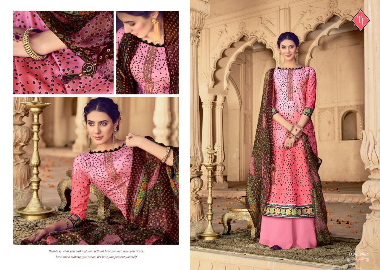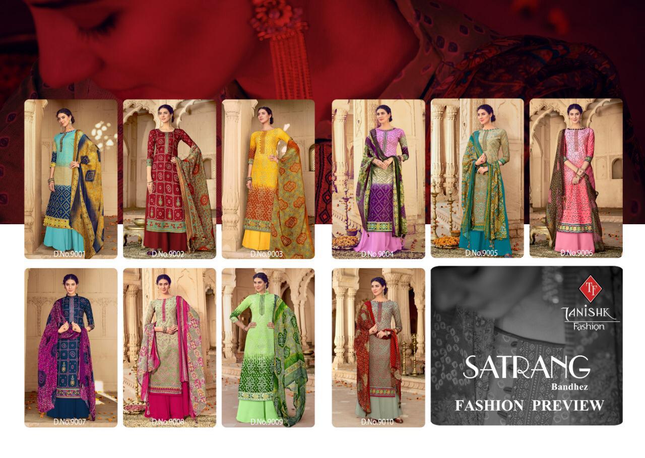 Buy Online Satrang Bandhej By Tanishka Fashion Lawn Bandhani Printed Suits Wholesale Supplier Surat 10 Pcs of Full Catalogue at Wholesale Price. Looking for Satrang Bandhej By Tanishka Fashion Lawn Bandhani Printed Suits Wholesale Supplier Surat Full Catalouge at Best Price? Buy Now Satrang Bandhej By Tanishka Fashion Lawn Bandhani Printed Suits Wholesale Supplier Surat at Wholesale Rate of Rs 5250 with Total 10 Pcs from authroized dealer and supplier of Tanishk fashion Brand. Cost of Each piece is just only Rs 525 which is very low and affordable price to resale the product in your retail store ,This is Surat based Wholesale Supplier & Dealer of Tanishk fashion Brand. Click on Brand name to Know more about Tanishk fashion Brand's products.Call or Whatsapp on 9898838984 for booking or enquiry