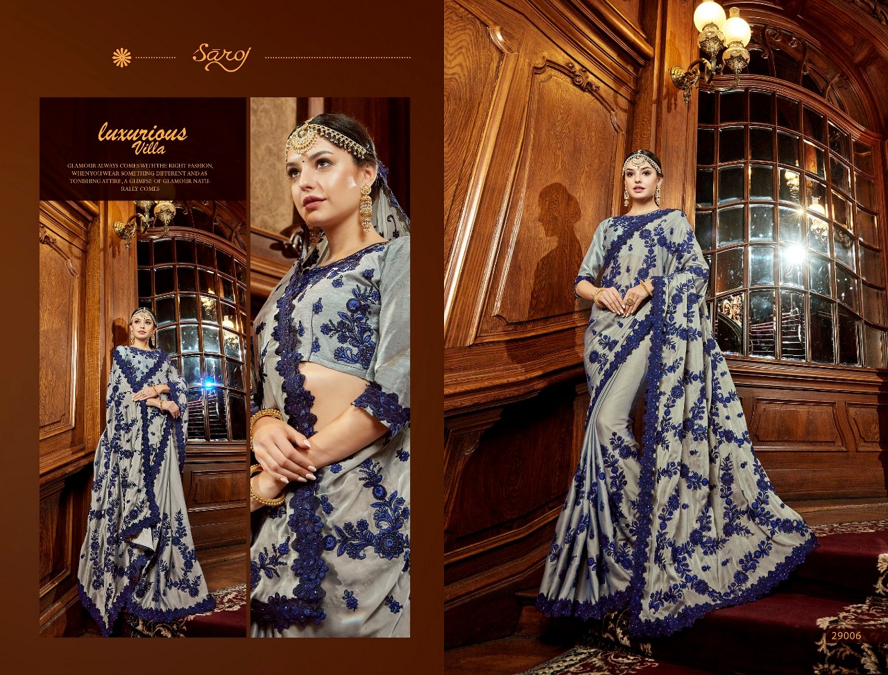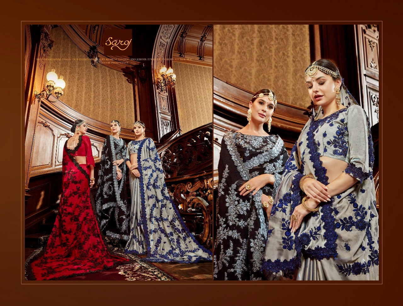 Satrangi By Saroj Rangoli Silk Designer Embroidered Party Wear Sarees Catlog Wholesale Suppliers Nd Trader Nitya Nx Surat