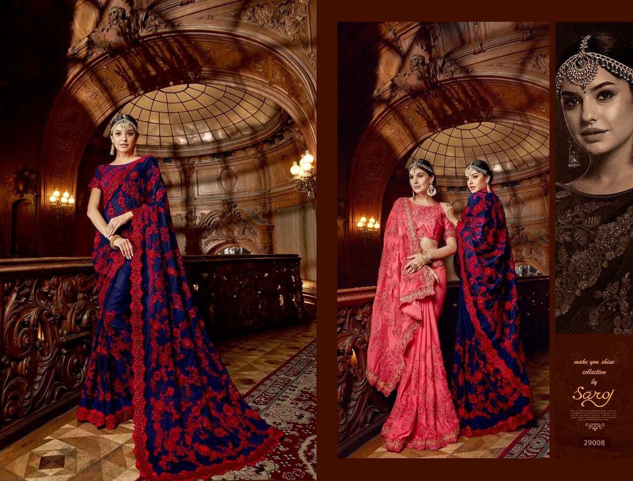 Buy Online Satrangi By Saroj Rangoli Silk Designer Embroidered Party Wear Sarees Catlog Wholesale Suppliers Nd Trader Nitya Nx Surat 8 Pcs of Full Catalogue at Wholesale Price. Looking for Satrangi By Saroj Rangoli Silk Designer Embroidered Party Wear Sarees Catlog Wholesale Suppliers Nd Trader Nitya Nx Surat Full Catalouge at Best Price? Buy Now Satrangi By Saroj Rangoli Silk Designer Embroidered Party Wear Sarees Catlog Wholesale Suppliers Nd Trader Nitya Nx Surat at Wholesale Rate of Rs 14040 with Total 8 Pcs from authroized dealer and supplier of SAROJ SAREE Brand. Cost of Each piece is just only Rs 1755 which is very low and affordable price to resale the product in your retail store ,This is Surat based Wholesale Supplier & Dealer of SAROJ SAREE Brand. Click on Brand name to Know more about SAROJ SAREE Brand's products.Call or Whatsapp on 9898838984 for booking or enquiry