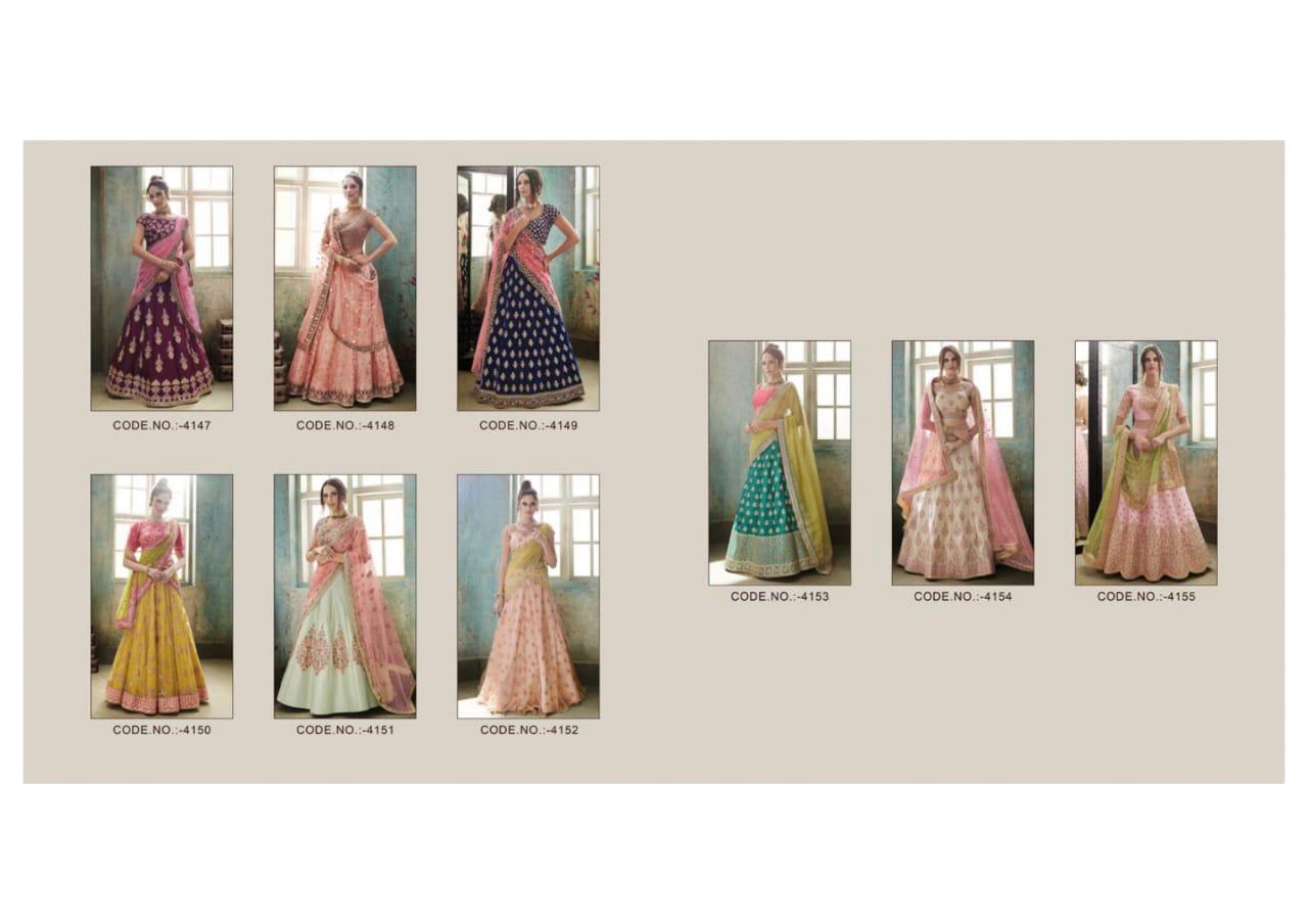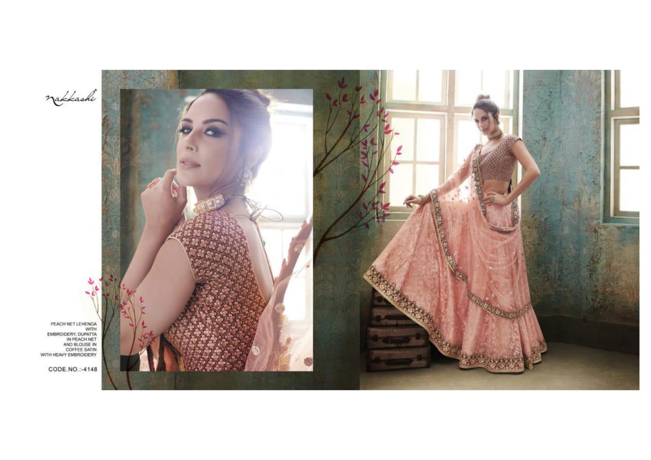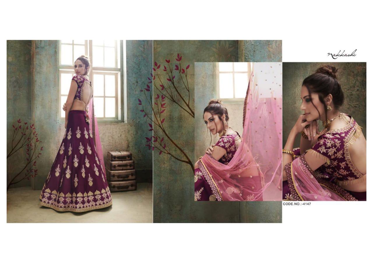 Buy Online Saugat By Nakkashi 4147 Series Heavy Fancy Designer Lehenga Collection Wholesaler Surat 9 Pcs of Full Catalogue at Wholesale Price. Looking for Saugat By Nakkashi 4147 Series Heavy Fancy Designer Lehenga Collection Wholesaler Surat Full Catalouge at Best Price? Buy Now Saugat By Nakkashi 4147 Series Heavy Fancy Designer Lehenga Collection Wholesaler Surat at Wholesale Rate of Rs 39681 with Total 9 Pcs from authroized dealer and supplier of NAKKASHI Brand. Cost of Each piece is just only Rs 4409 which is very low and affordable price to resale the product in your retail store ,This is Surat based Wholesale Supplier & Dealer of NAKKASHI Brand. Click on Brand name to Know more about NAKKASHI Brand's products.Call or Whatsapp on 9898838984 for booking or enquiry