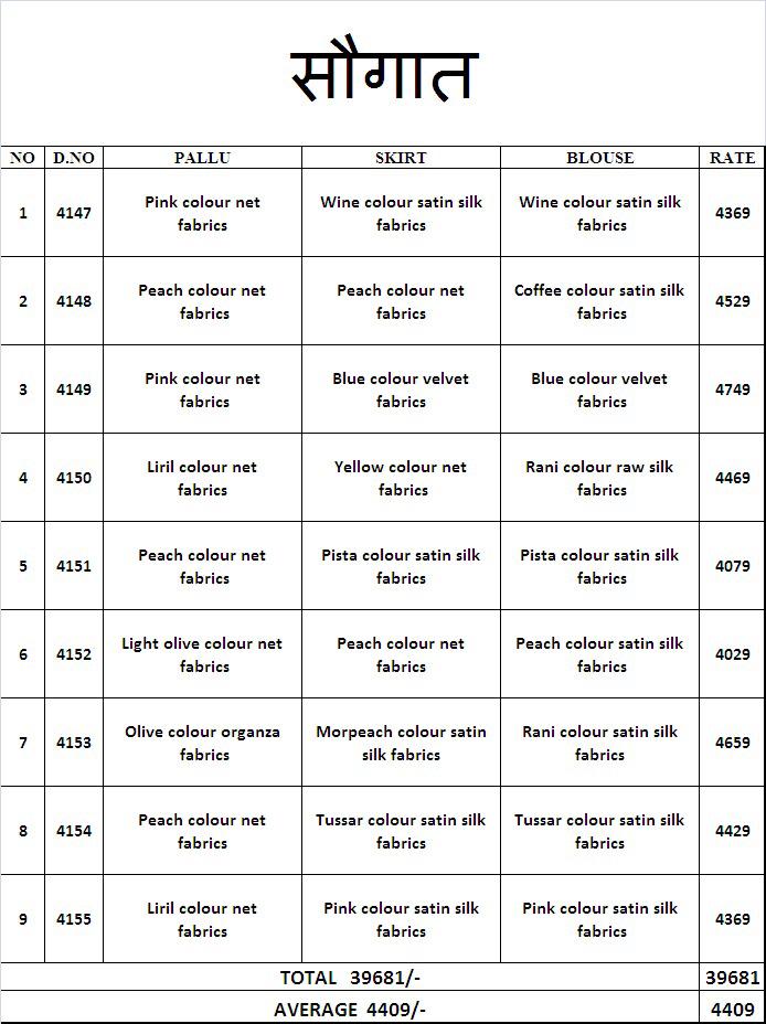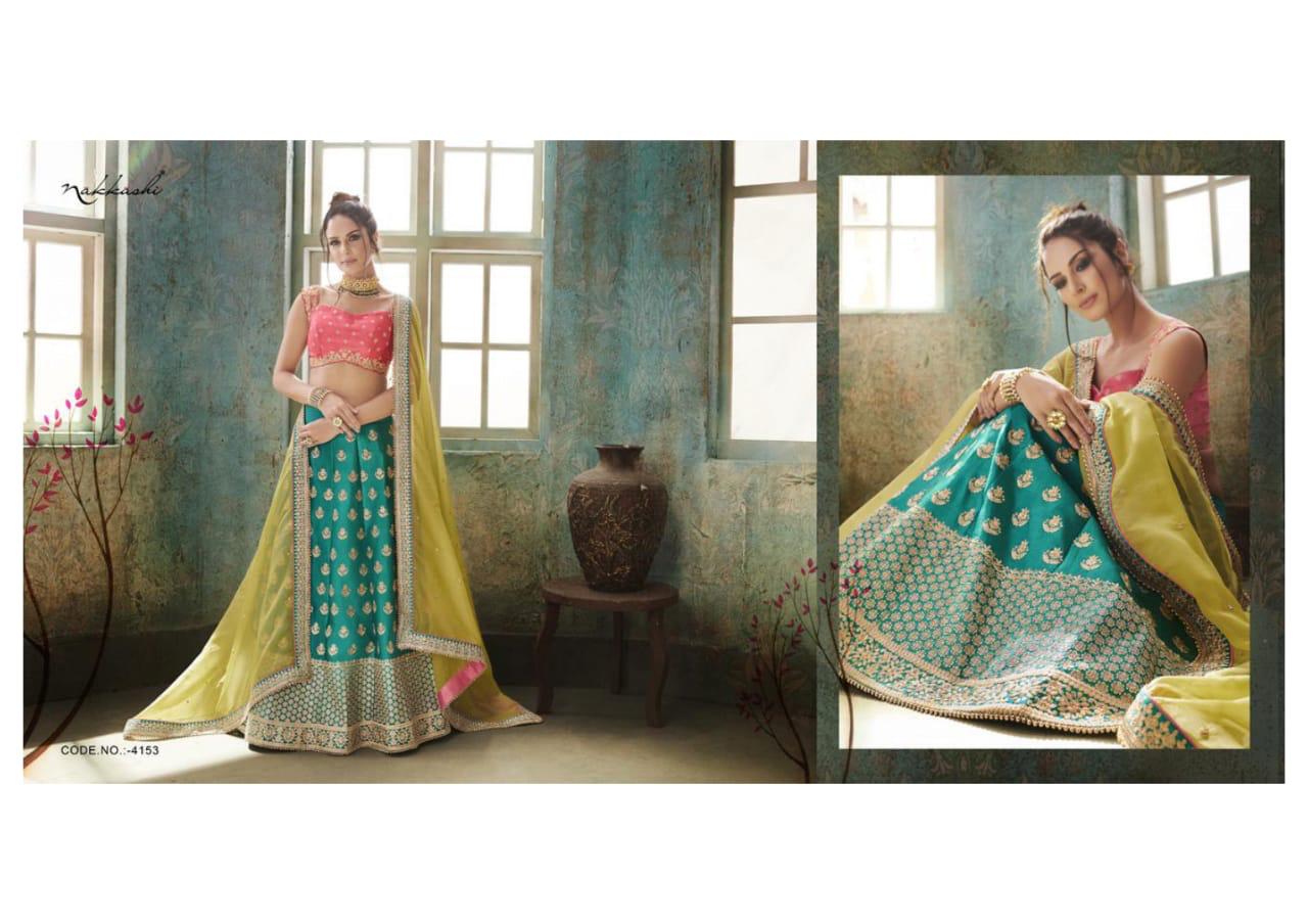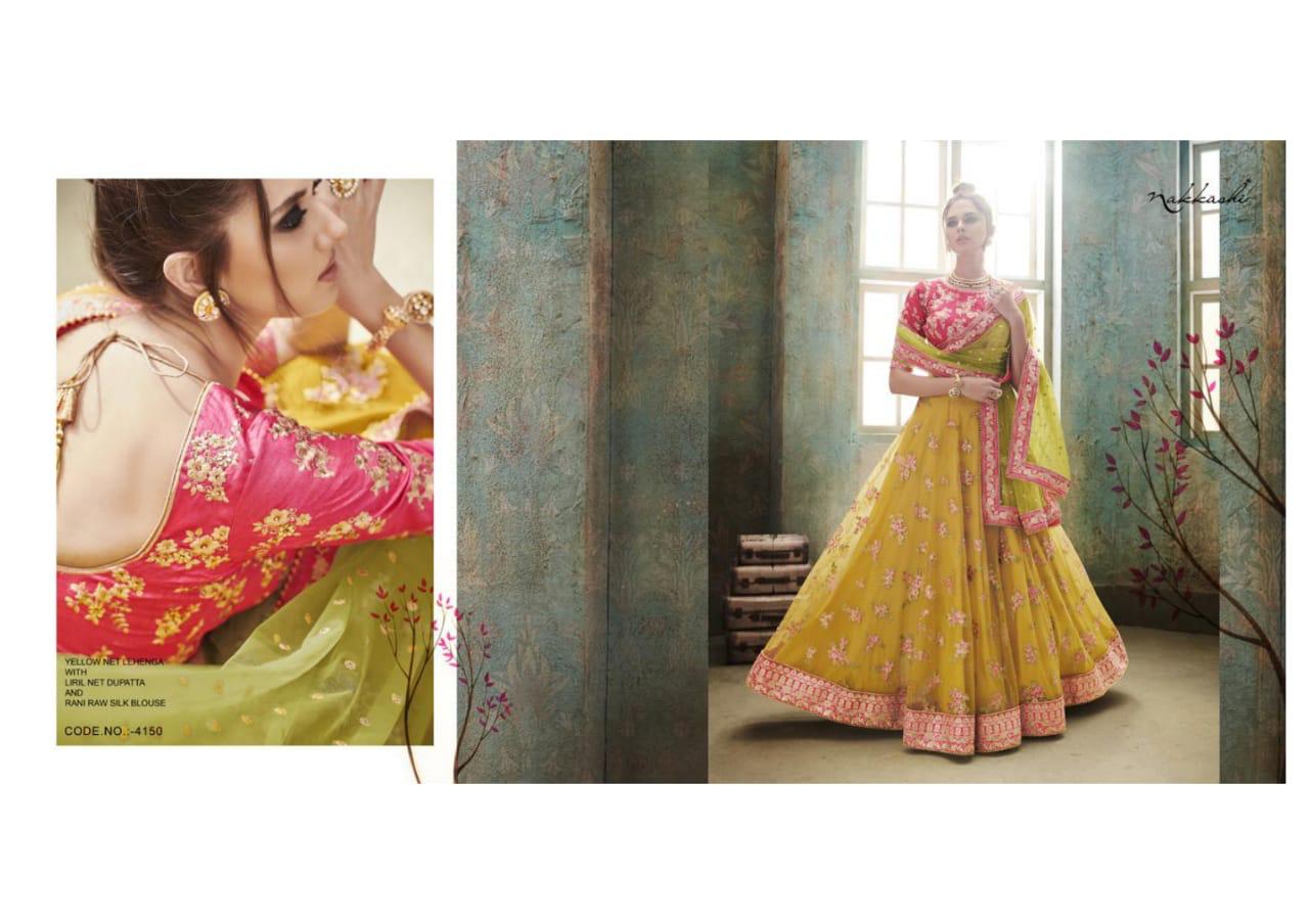 Buy Online Saugat By Nakkashi 4147 Series Heavy Fancy Designer Lehenga Collection Wholesaler Surat 9 Pcs of Full Catalogue at Wholesale Price. Looking for Saugat By Nakkashi 4147 Series Heavy Fancy Designer Lehenga Collection Wholesaler Surat Full Catalouge at Best Price? Buy Now Saugat By Nakkashi 4147 Series Heavy Fancy Designer Lehenga Collection Wholesaler Surat at Wholesale Rate of Rs 39681 with Total 9 Pcs from authroized dealer and supplier of NAKKASHI Brand. Cost of Each piece is just only Rs 4409 which is very low and affordable price to resale the product in your retail store ,This is Surat based Wholesale Supplier & Dealer of NAKKASHI Brand. Click on Brand name to Know more about NAKKASHI Brand's products.Call or Whatsapp on 9898838984 for booking or enquiry