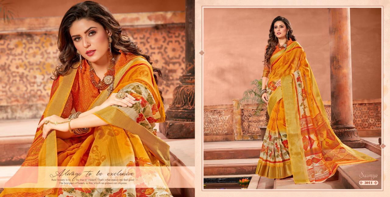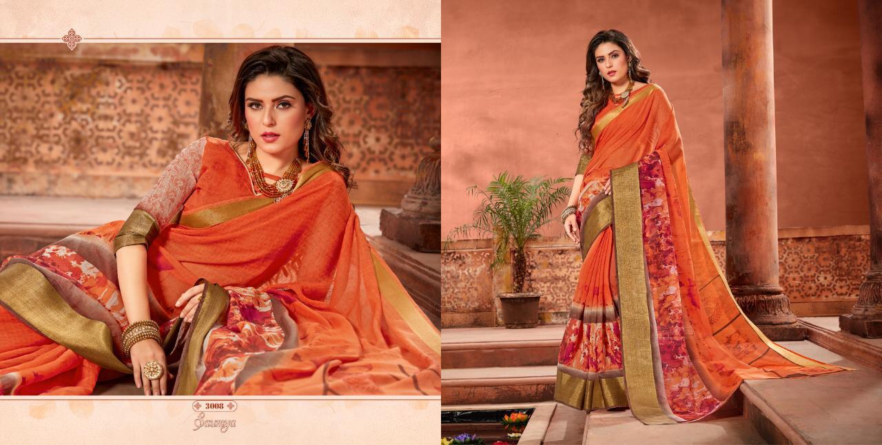 Saumya By Chahet Casab Border Printed Sarees Wholesale Supplier India