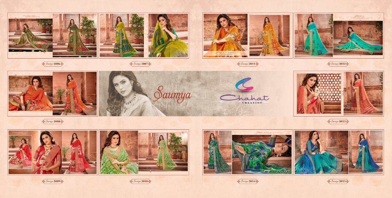Buy Online Saumya By Chahet Casab Border Printed Sarees Wholesale Supplier India 10 Pcs of Full Catalogue at Wholesale Price. Looking for Saumya By Chahet Casab Border Printed Sarees Wholesale Supplier India Full Catalouge at Best Price? Buy Now Saumya By Chahet Casab Border Printed Sarees Wholesale Supplier India at Wholesale Rate of Rs 4950 with Total 10 Pcs from authroized dealer and supplier of CHAHAT CREATION Brand. Cost of Each piece is just only Rs 495 which is very low and affordable price to resale the product in your retail store ,This is Surat based Wholesale Supplier & Dealer of CHAHAT CREATION Brand. Click on Brand name to Know more about CHAHAT CREATION Brand's products.Call or Whatsapp on 9898838984 for booking or enquiry