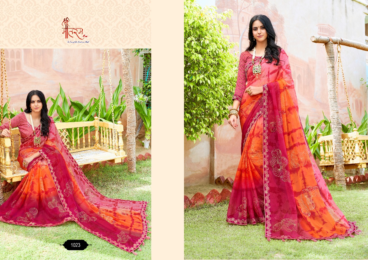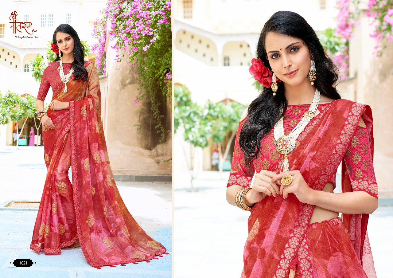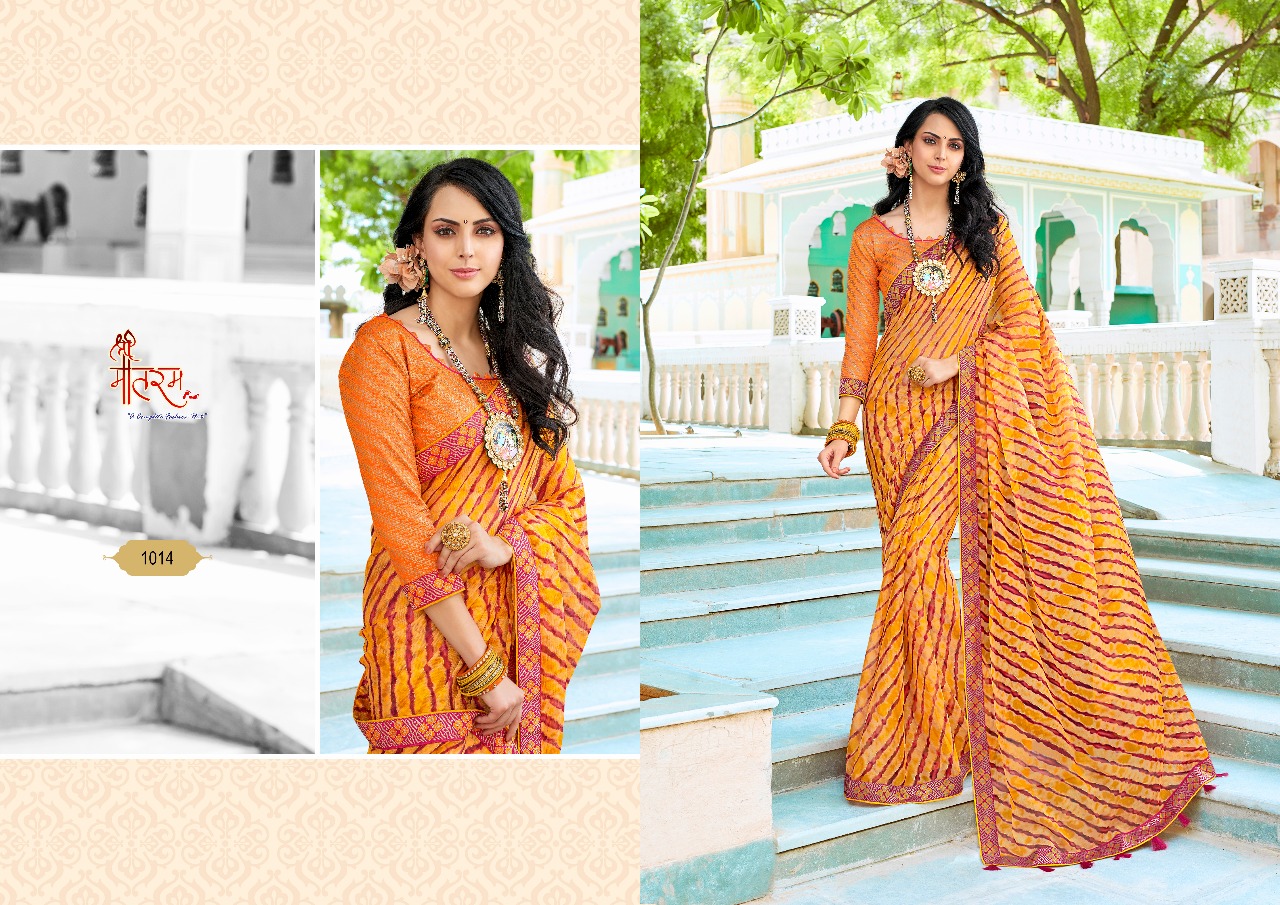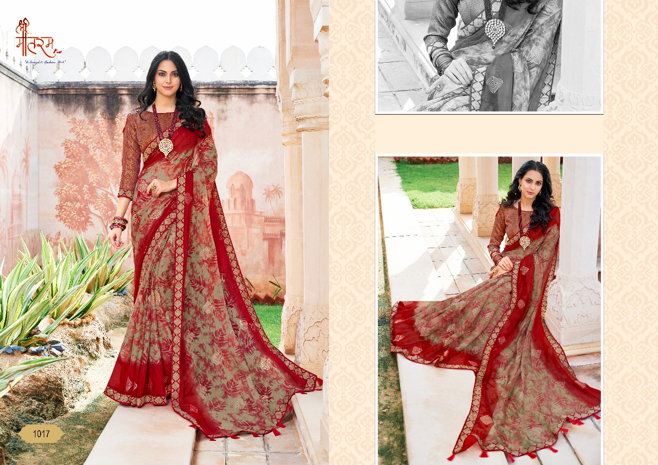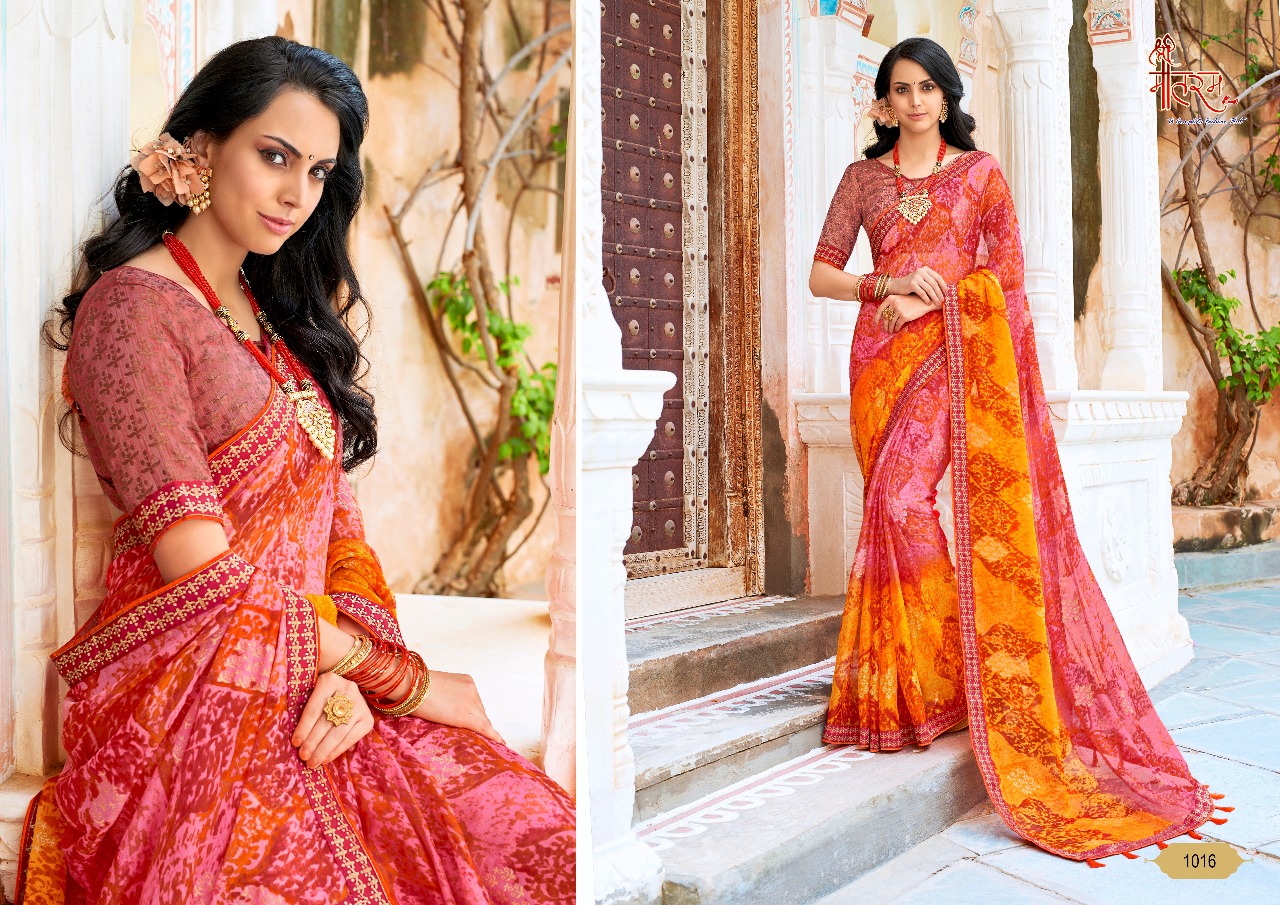 Brand Â? ???? Maataram product by ???? Marudhar kesri saree pvt ltd -Surat Catlog name Â? saundarya vol. 2 Fabrics- pure chiffon + rapier jeq border blouse Total 9 saree in one set . *Rate - 695 per Pcs * Set to set . singles also available 795+5%+ship Book your order |