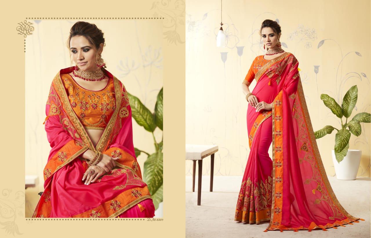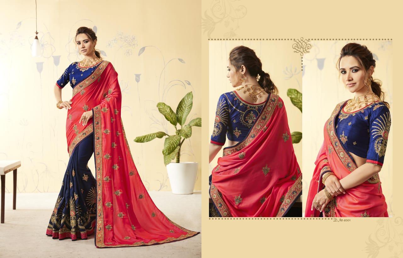 Brand - Kessi . Type -Saree. Series -8301 to 8312. Rate -1399 per Pcs . GST 5 Percent Extra. Delivery 3-4 days . Book your order |