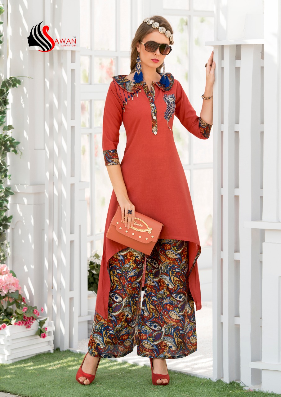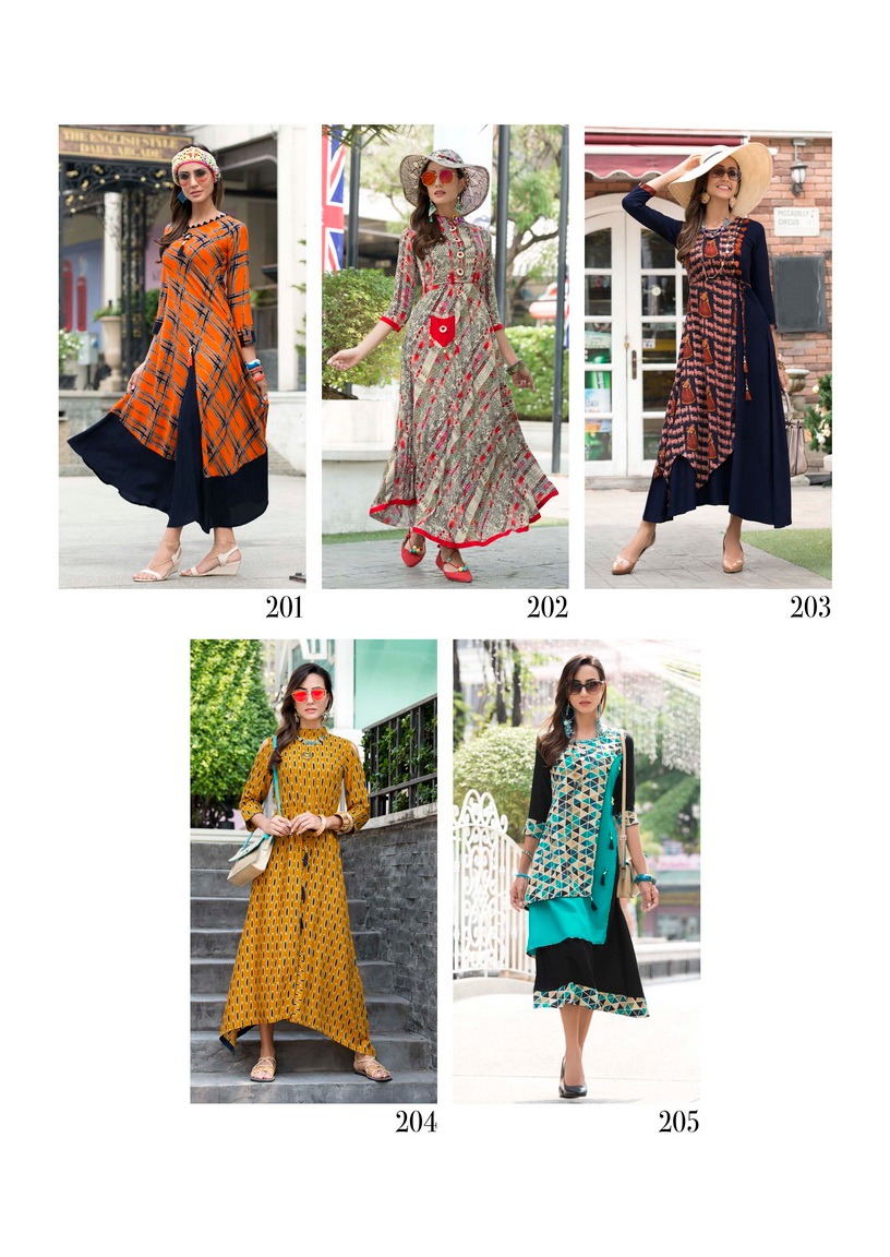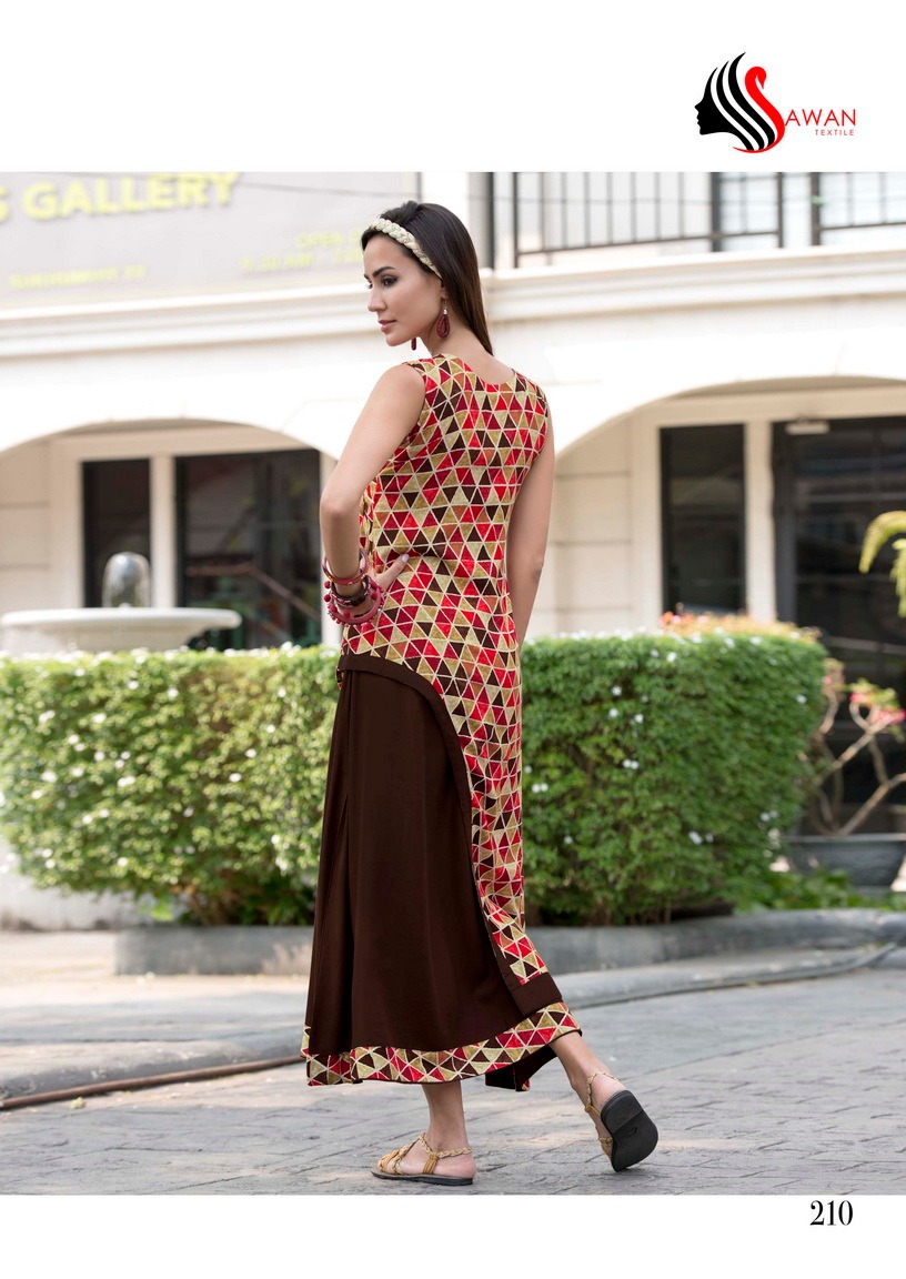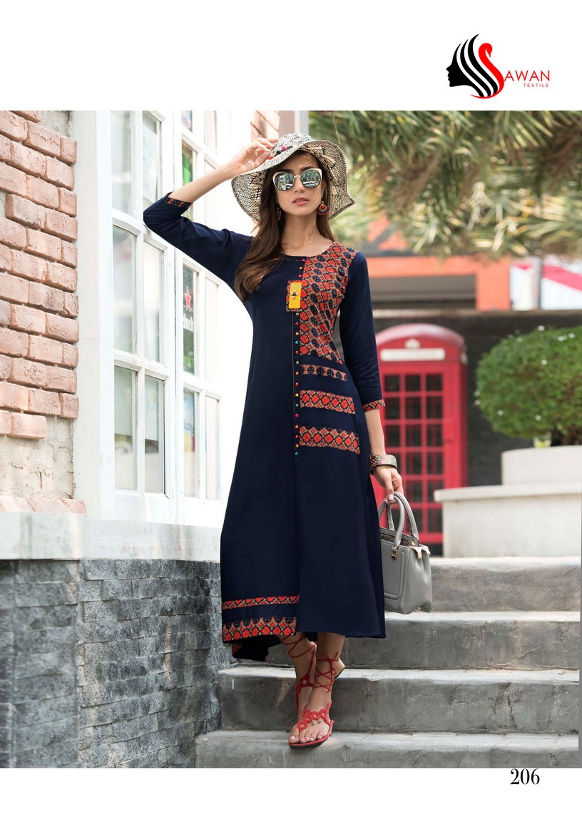 Buy Online Sawan Creation Jessica Vol 2 201 To 210 Series Reyon Kurti 10 Pcs of Full Catalogue at Wholesale Price. Looking for Sawan Creation Jessica Vol 2 201 To 210 Series Reyon Kurti Full Catalouge at Best Price? Buy Now Sawan Creation Jessica Vol 2 201 To 210 Series Reyon Kurti at Wholesale Rate of Rs 5950 with Total 10 Pcs from authroized dealer and supplier of SAWAN CREATION Brand. Cost of Each piece is just only Rs 595 which is very low and affordable price to resale the product in your retail store ,This is Surat based Wholesale Supplier & Dealer of SAWAN CREATION Brand. Click on Brand name to Know more about SAWAN CREATION Brand's products.Call or Whatsapp on 9898838984 for booking or enquiry