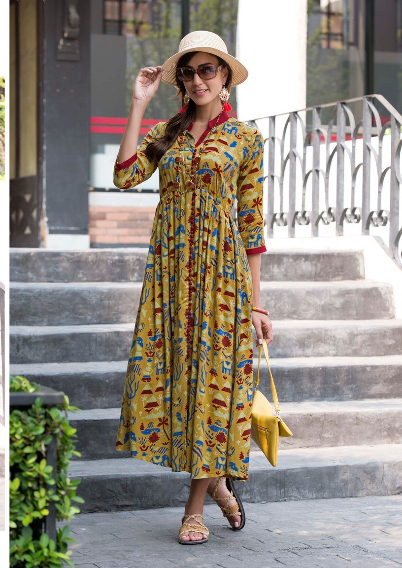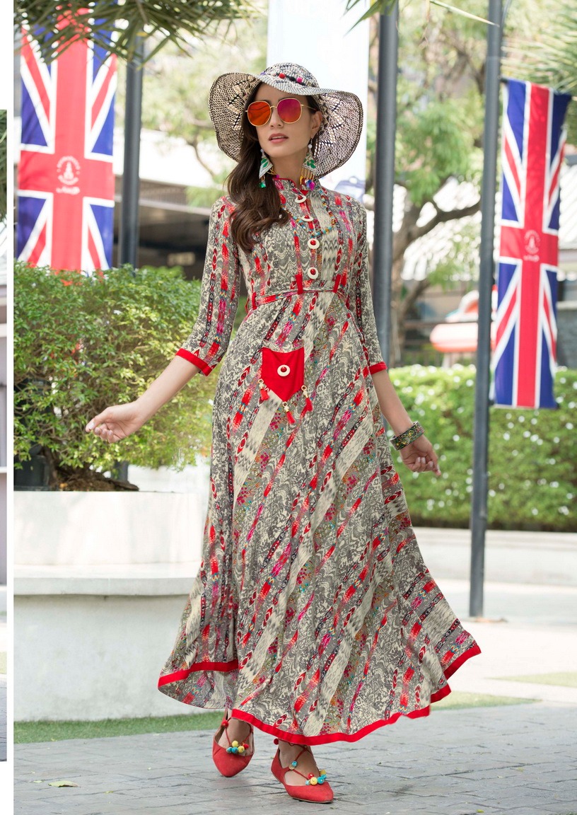 SAWAN TEXTILE NEW ARRIVALS Catalog : Jessica Vol 2 Fabric : Heavy Rayon Print with Flair Size : M,L,XL,XXL. Designs : 10 Length : 48" to 50" Rate : 595 5% GST hurryy upp...Book your order now... Regards SAWAN CREATION |