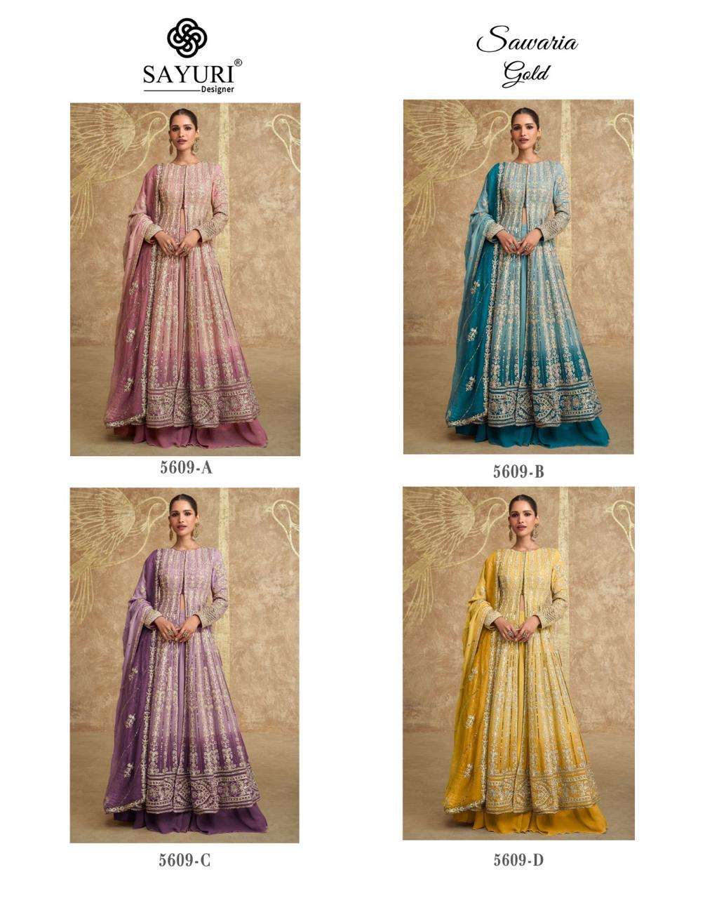 SAWARIA GOLD by SAYURI DESIGNER REAL GEROGETTE gown collection manufacturer surat