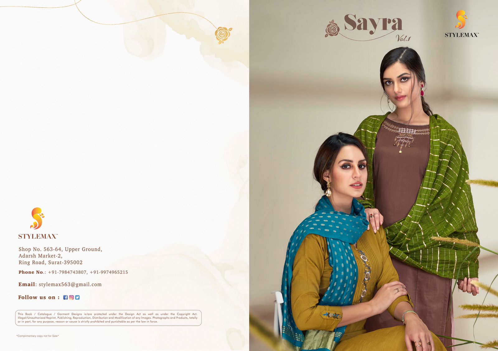 Buy Online Sayra By Stylemax Wholesaler Supplier From Surat 8 Pcs of Full Catalogue at Wholesale Price. Looking for Sayra By Stylemax Wholesaler Supplier From Surat Full Catalouge at Best Price? Buy Now Sayra By Stylemax Wholesaler Supplier From Surat at Wholesale Rate of Rs 7192 with Total 8 Pcs from authroized dealer and supplier of Brand. Cost of Each piece is just only Rs 899 which is very low and affordable price to resale the product in your retail store ,This is Surat based Wholesale Supplier & Dealer of Brand. Click on Brand name to Know more about Brand's products.Call or Whatsapp on 9898838984 for booking or enquiry