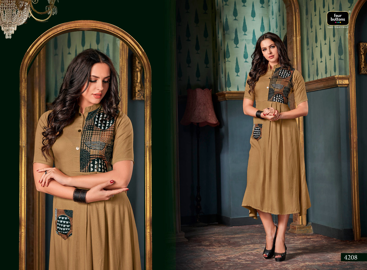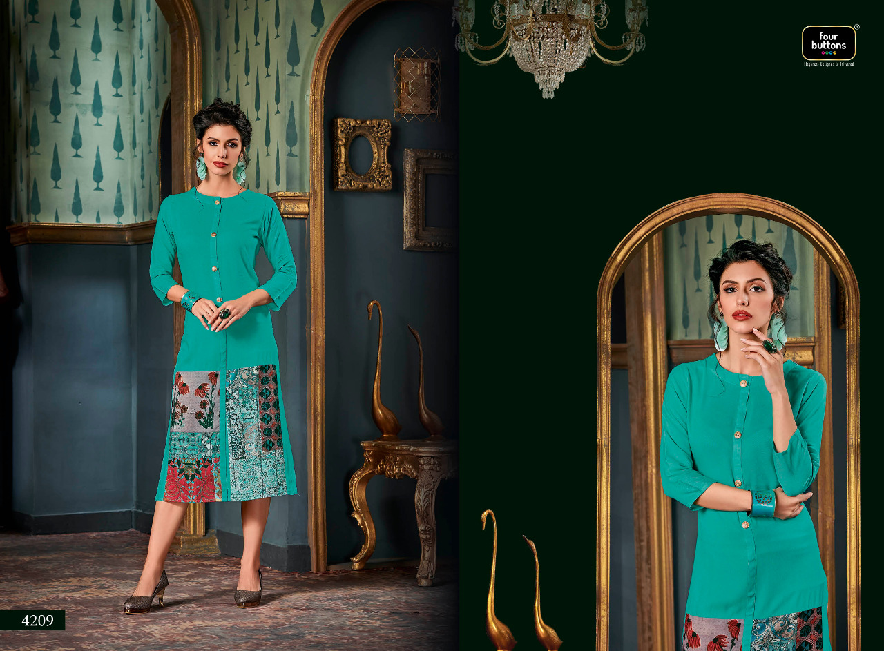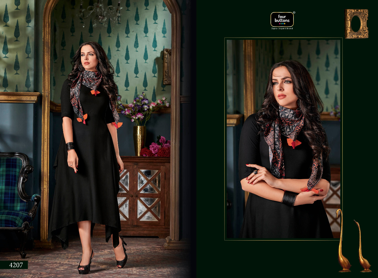 Buy Online Scarlet By Four Buttons Fancy Desinger Kurtis Wholesale Supplier And Dealer Gujarat 10 Pcs of Full Catalogue at Wholesale Price. Looking for Scarlet By Four Buttons Fancy Desinger Kurtis Wholesale Supplier And Dealer Gujarat Full Catalouge at Best Price? Buy Now Scarlet By Four Buttons Fancy Desinger Kurtis Wholesale Supplier And Dealer Gujarat at Wholesale Rate of Rs 5250 with Total 10 Pcs from authroized dealer and supplier of FOUR BUTTONS Brand. Cost of Each piece is just only Rs 525 which is very low and affordable price to resale the product in your retail store ,This is Surat based Wholesale Supplier & Dealer of FOUR BUTTONS Brand. Click on Brand name to Know more about FOUR BUTTONS Brand's products.Call or Whatsapp on 9898838984 for booking or enquiry