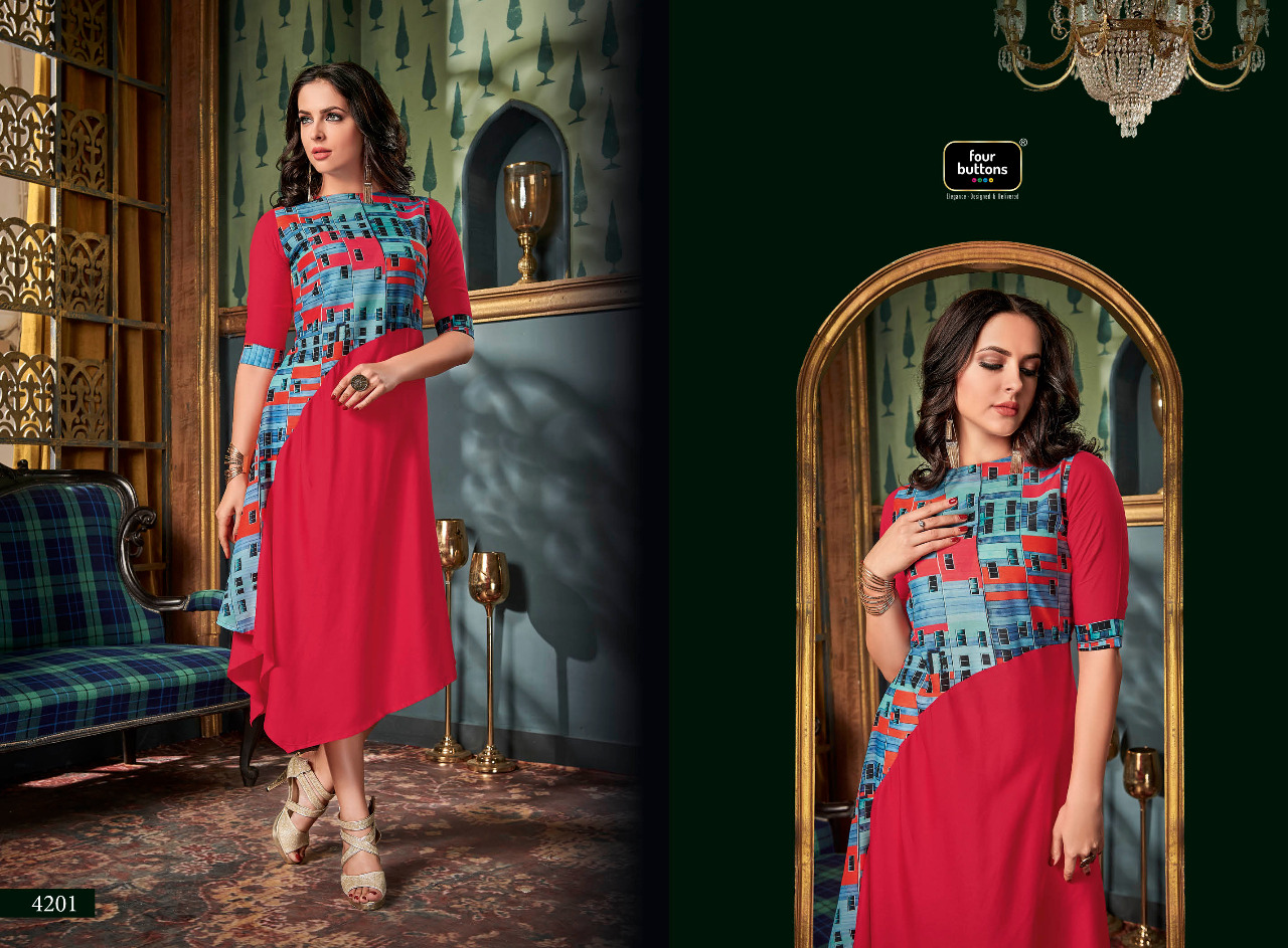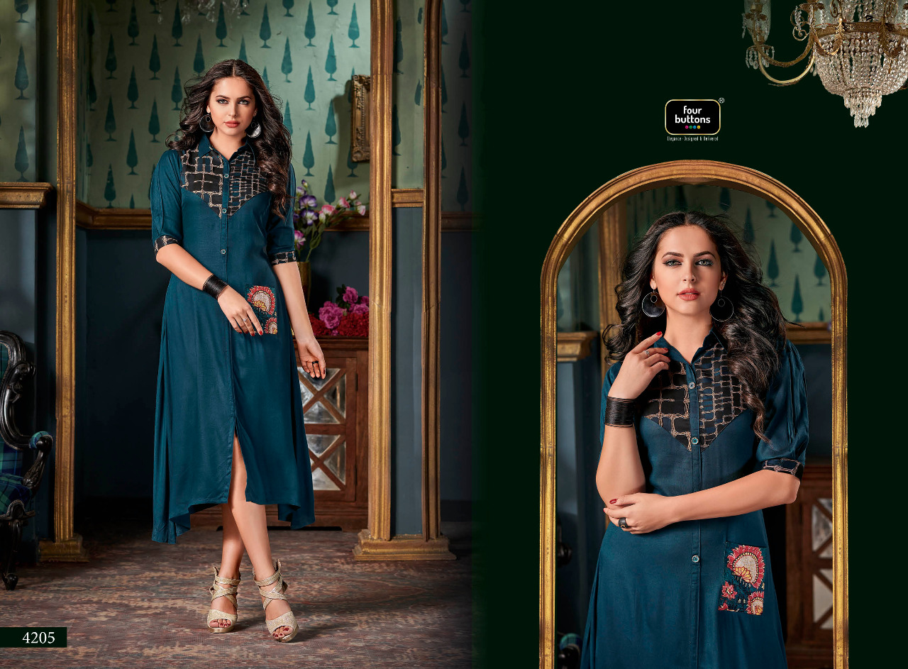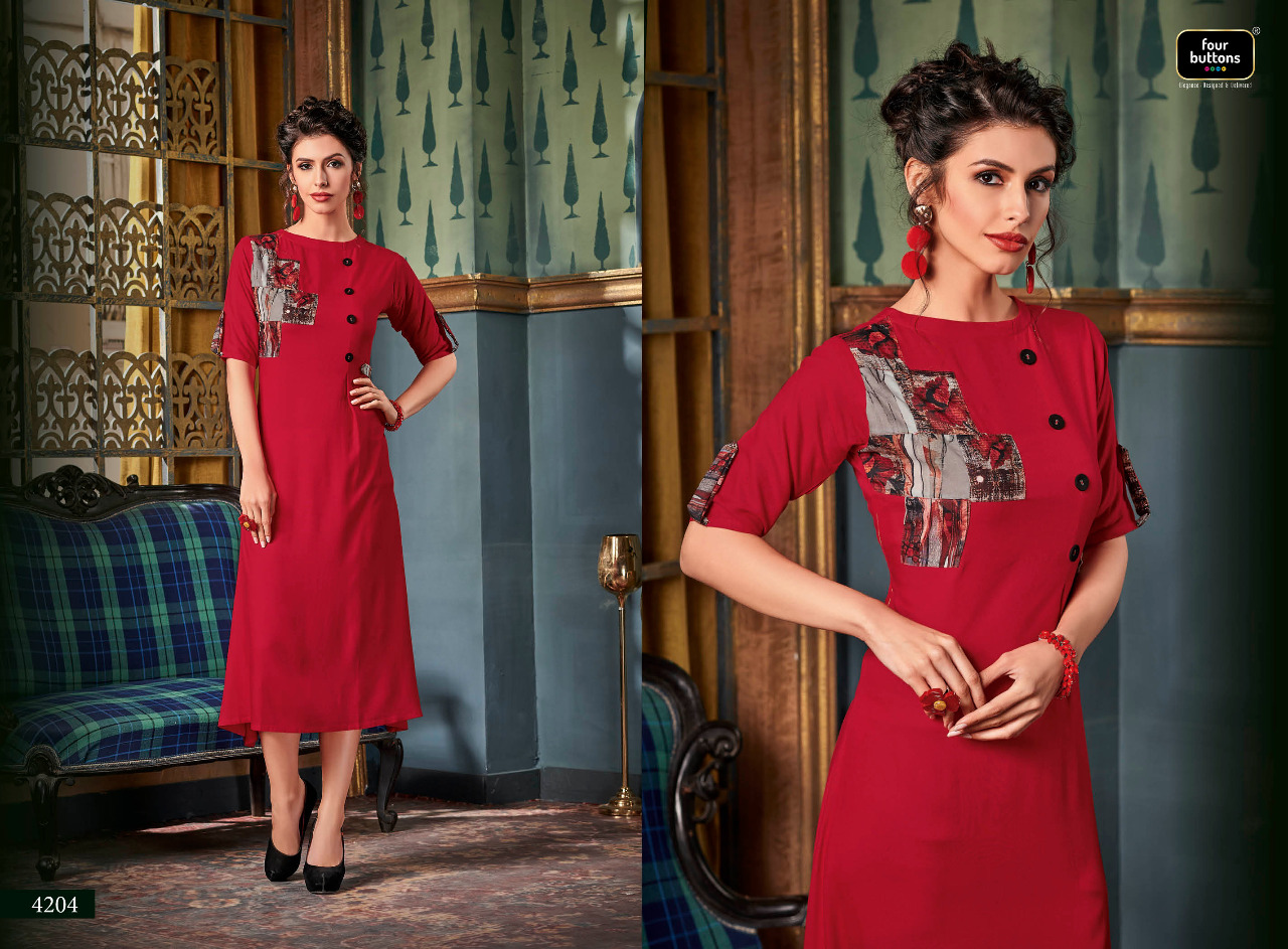 Scarlet By Four Buttons Fancy Desinger Kurtis Wholesale Supplier And Dealer Gujarat