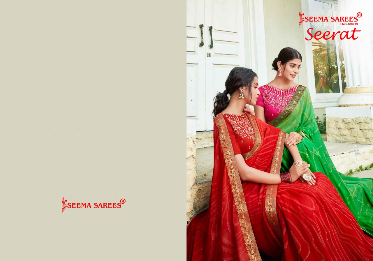 Buy Online Seerat By Seema Saree Manufacturer Traders And Dealer From India 8 Pcs of Full Catalogue at Wholesale Price. Looking for Seerat By Seema Saree Manufacturer Traders And Dealer From India Full Catalouge at Best Price? Buy Now Seerat By Seema Saree Manufacturer Traders And Dealer From India at Wholesale Rate of Rs 5040 with Total 8 Pcs from authroized dealer and supplier of Brand. Cost of Each piece is just only Rs 630 which is very low and affordable price to resale the product in your retail store ,This is Surat based Wholesale Supplier & Dealer of Brand. Click on Brand name to Know more about Brand's products.Call or Whatsapp on 9898838984 for booking or enquiry